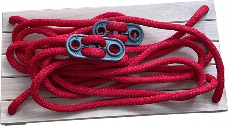 Vier sterke rode touwen met metalen doorvoeren en gladde haken zijn ontworpen voor een lange levensduur en veilig gebruik.