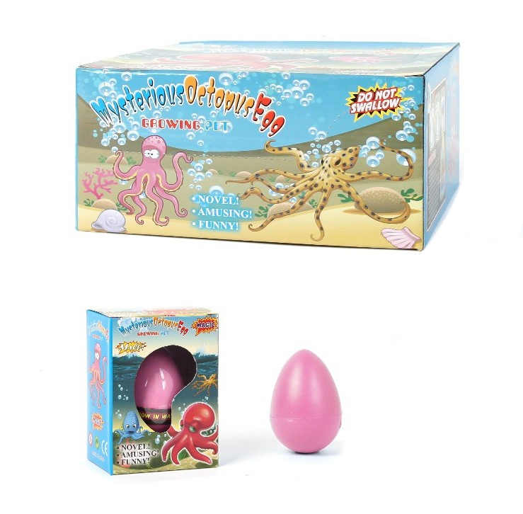 Dit leuke groeiende speeltje biedt kinderen en volwassenen een unieke ervaring: plaats het ei in een bak met water en binnen enkele uren tot dagen zie je hoe de octopus uitkomt en geleidelijk in omvang toeneemt. Eenvoudige uitvoering, een boeiend effect en minimale voorbereiding maken het tot een uitstekende keuze voor thuisvermaak.
