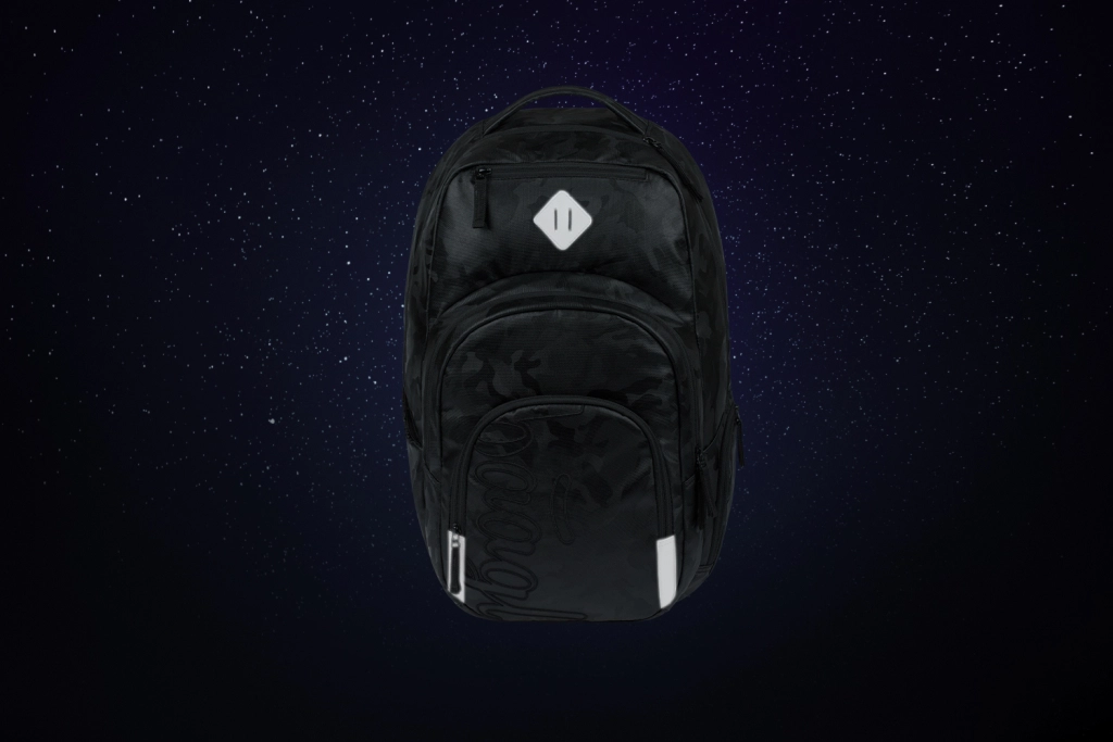 Binnenin vind je drie aparte compartimenten, een vak voor een 17"-laptop, een organizer voor kleine spullen, een geïsoleerd vak voor snacks en een gepolsterd vak voor een bril. Een speciaal vak met een zelfoprollende houder voor sleutels/pas voorkomt verlies. Kwalitatieve YKK-ritsen en reflecterende elementen benadrukken veiligheid en duurzaamheid. De etui met dubbele uitklapflap biedt plaats aan alle benodigdheden (geleverd zonder inhoud) en de gymsac met trekkoord is ideaal voor schoenen of gym.