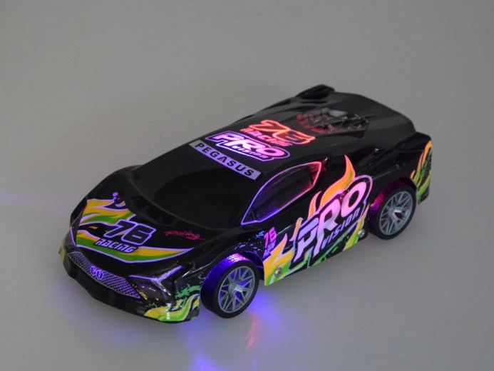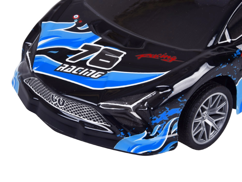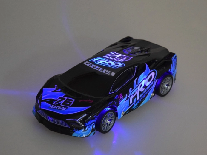De RC sportauto biedt dynamisch rijden op verschillende ondergronden dankzij de rubberen wielen en het lichte, duurzame chassis. De instelbare wieluitlijning helpt bij nauwkeurige koershouding en stabieler rijden. De verlichte carrosserie met knipperende effecten geeft elke race een aantrekkelijke look.