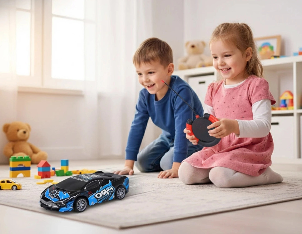 De bediening is eenvoudig dankzij de comfortabele ronde controller met automatische koppeling. Je kunt vooruit en achteruit rijden en rechts en links draaien, zodat je zowel fijne manoeuvres als snelle sprints aankunt. De auto is ideaal voor thuis- en kinder-racebanen en is een origineel cadeau.
