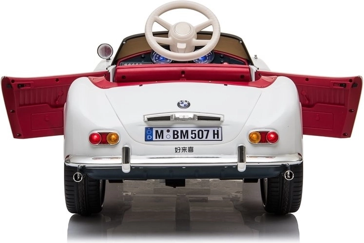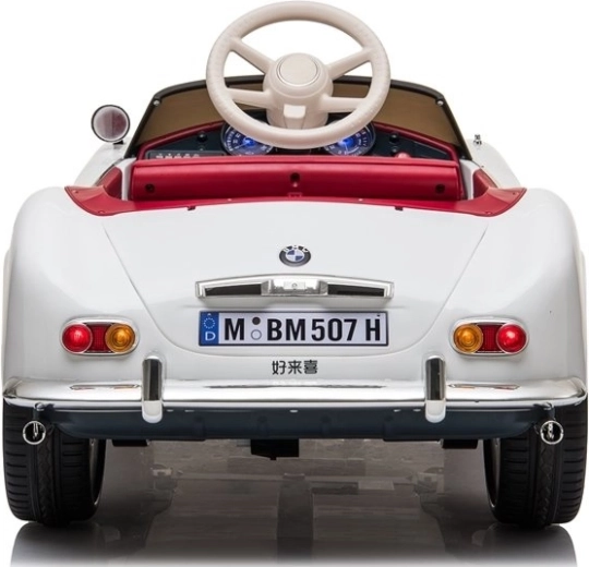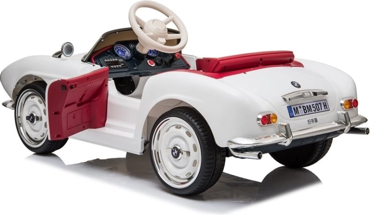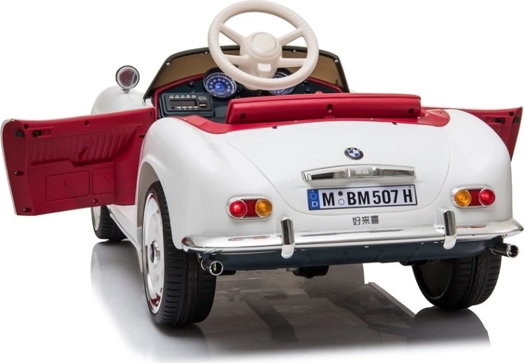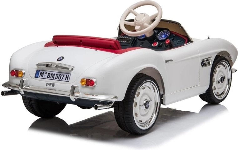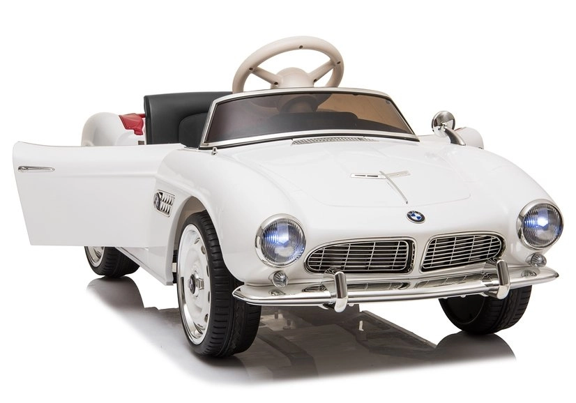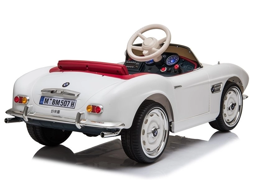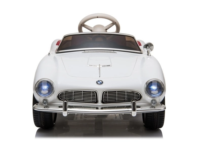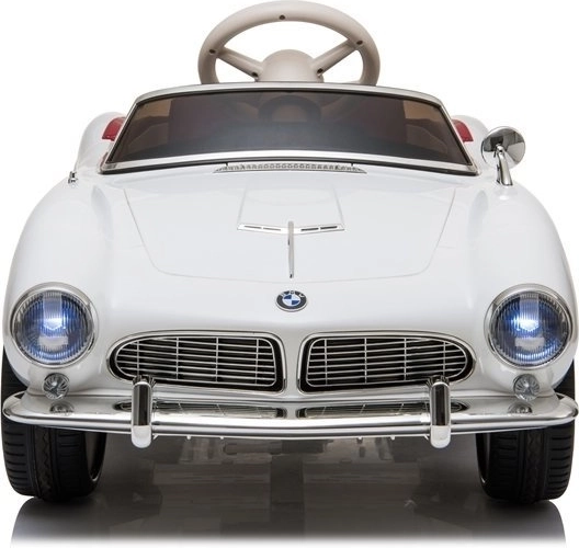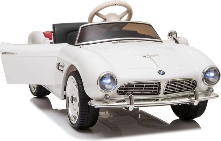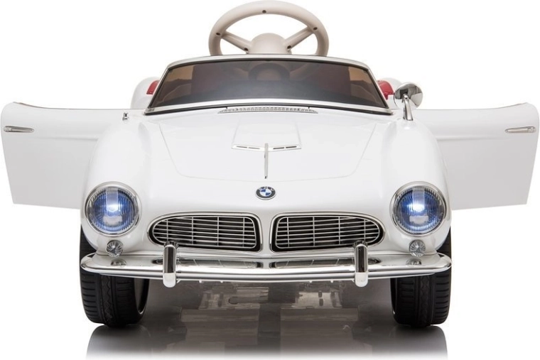 De elektrische BMW Retro kinderauto in het wit betovert met een tijdloze look en doordachte details. Kinderen zullen genieten van de brandende koplampen, openende deuren en de authentieke grille met chromen accenten. De robuuste constructie en de comfortabele stoel zorgen voor een prettige en veilige rit.