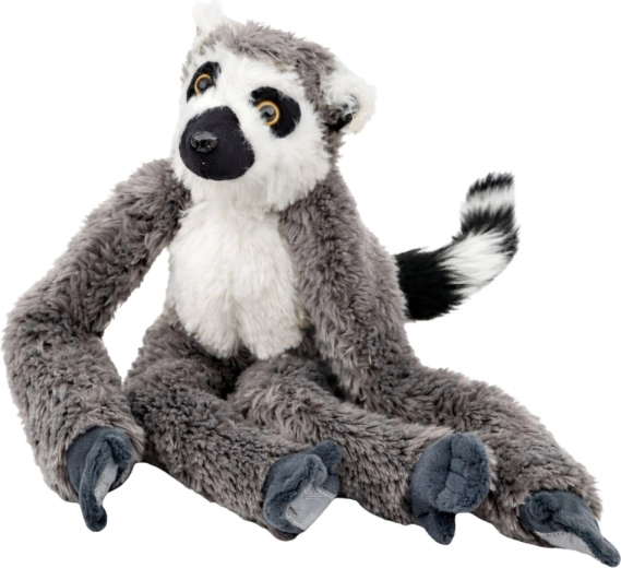 Schattige pluchen maki met lange, flexibele pootjes en klittenband om op te hangen, ideaal om mee te knuffelen, spelen en als decoratie voor de kinderkamer. Gemaakt van superzacht, aaibaar materiaal met realistische details en dankzij het licht verzwaarde lijfje kan hij stabiel zitten.