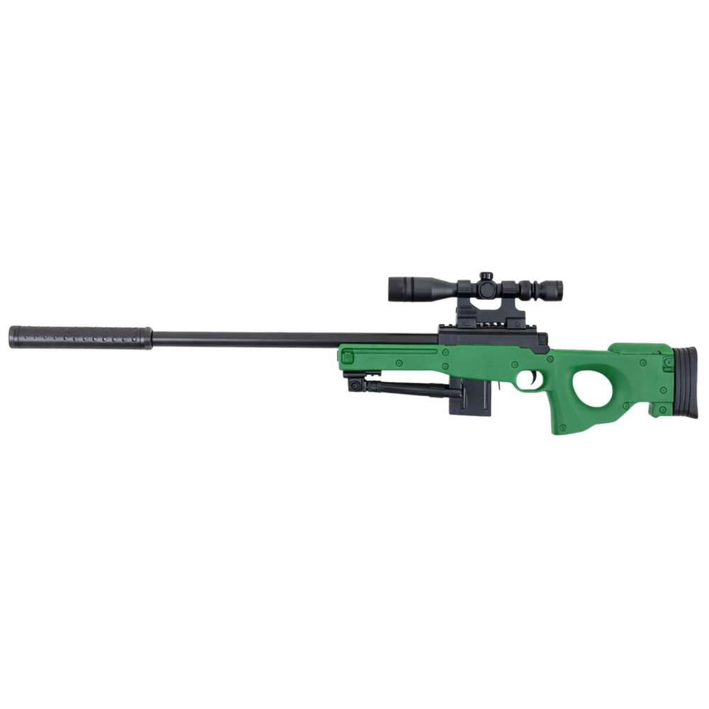 Dit opvallende kinder-snipergeweer heeft een lang lichaam met tactische look, een afneembaar magazijn en stabiele ondersteuning dankzij de inklapbare bipod. De meegeleverde richtkijker maakt nauwkeuriger mikken eenvoudiger, terwijl de demperhuls het realistische uiterlijk compleet maakt. Het veersysteem zorgt na handmatig spannen voor een schot – zonder batterijen of opladen.
