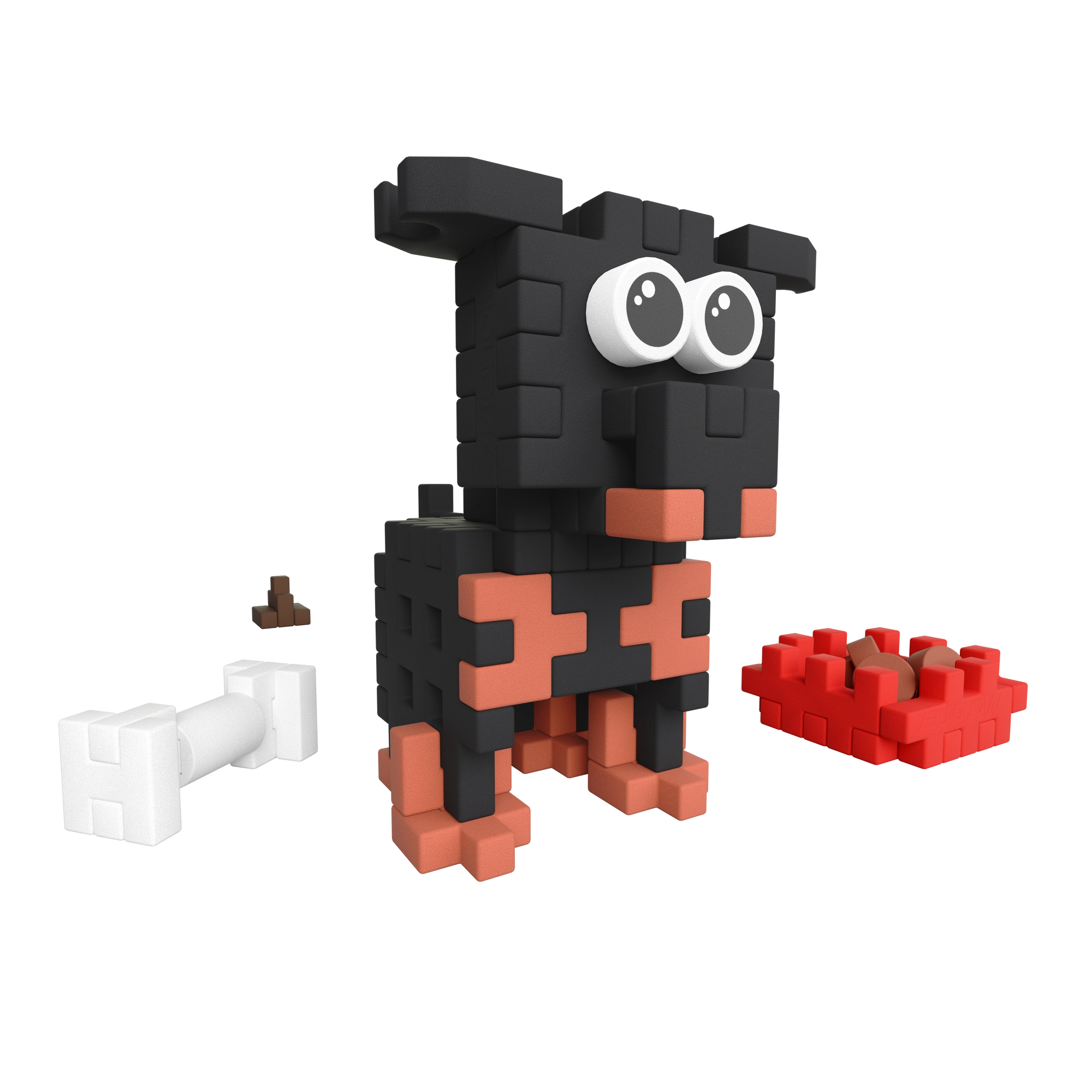 Bouw een stijlvolle hond met grote ogen en accessoires – een voederbak met brokjes, een bot en een “drolletje”. Een geweldige basis voor rollenspel bij kinderen.