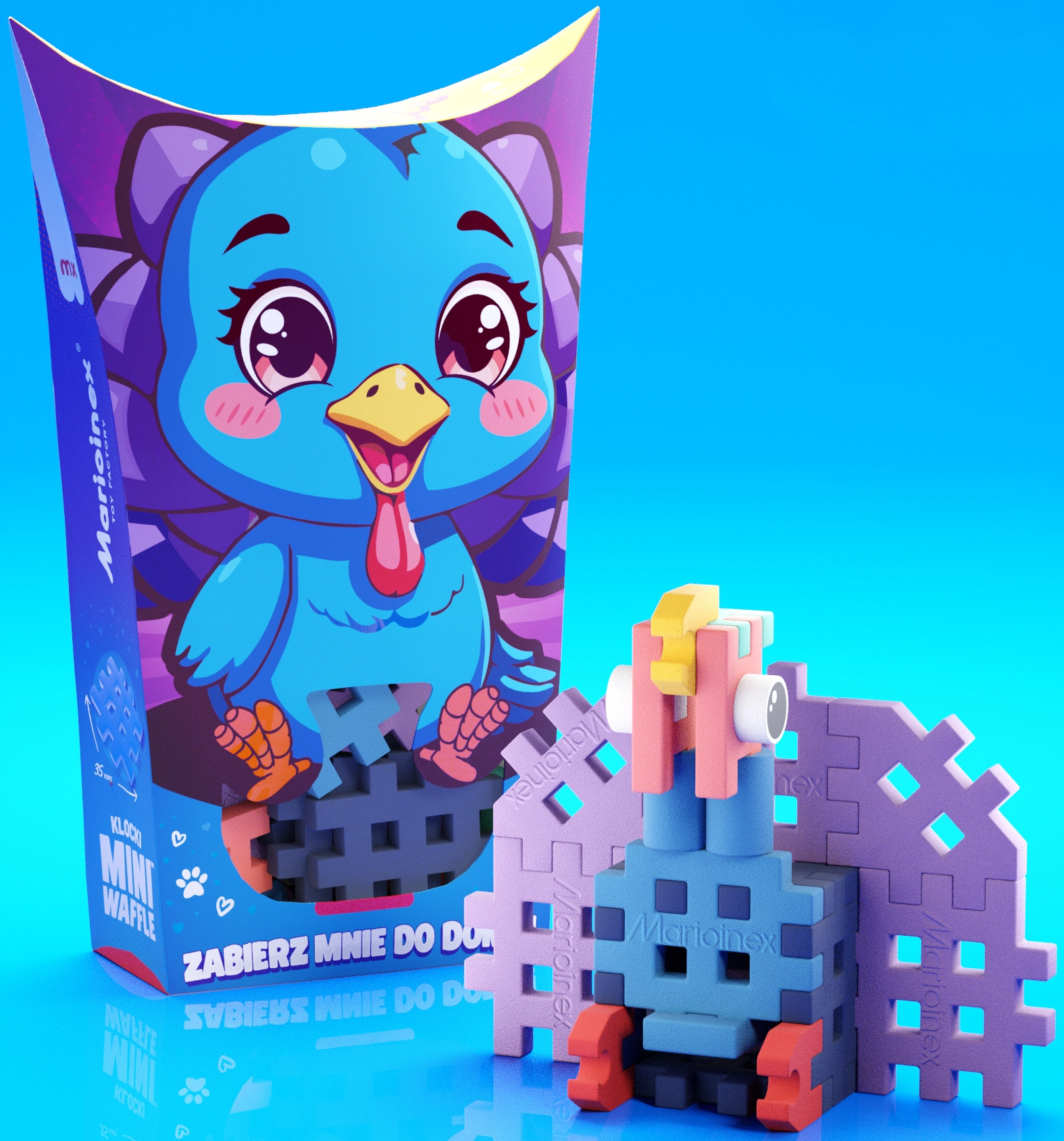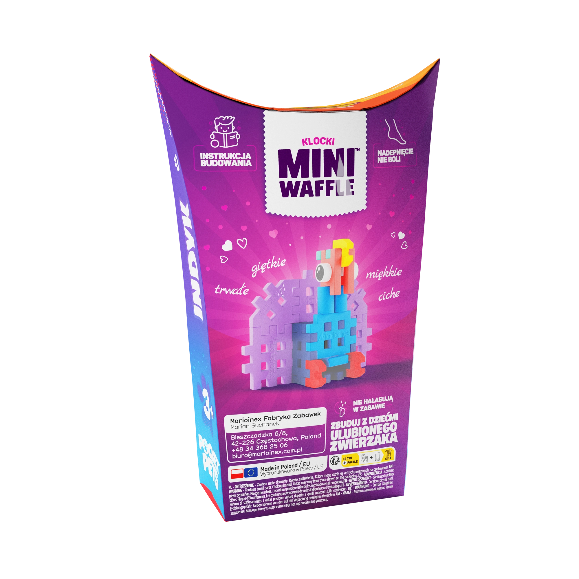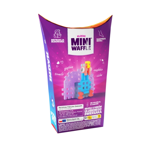 Ontdek de compacte bouwset Mini Waffle Pocket Pets van het merk Marioinex, waarmee je uit 25 onderdelen een schattig kalkoentje bouwt. De blokken zijn elastisch, duurzaam en veilig, klikken gemakkelijk in en uit elkaar en stimuleren creativiteit, fijne motoriek en logisch denken. Ideaal om in 2D en 3D te bouwen en perfect te combineren met andere Mini Waffle-sets.