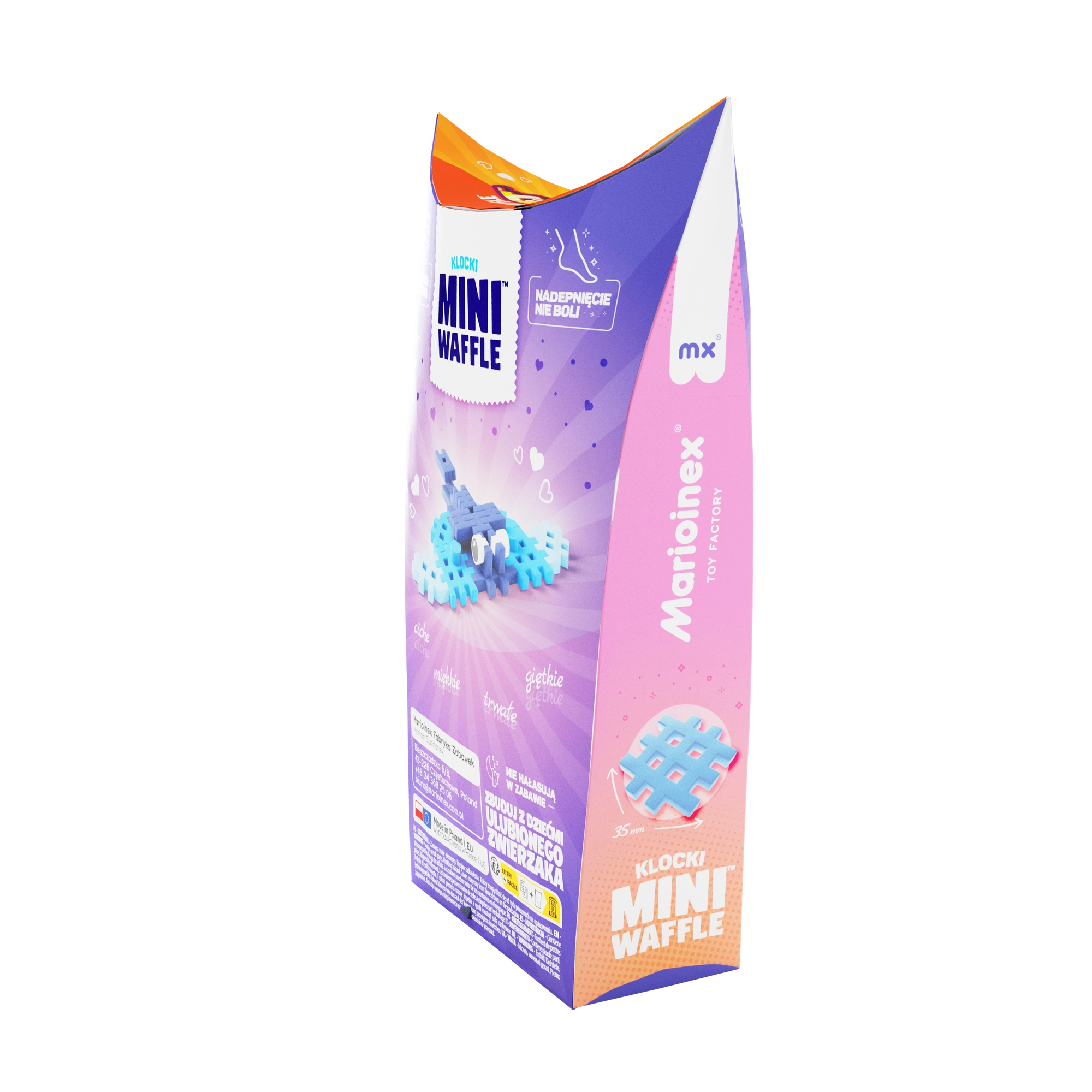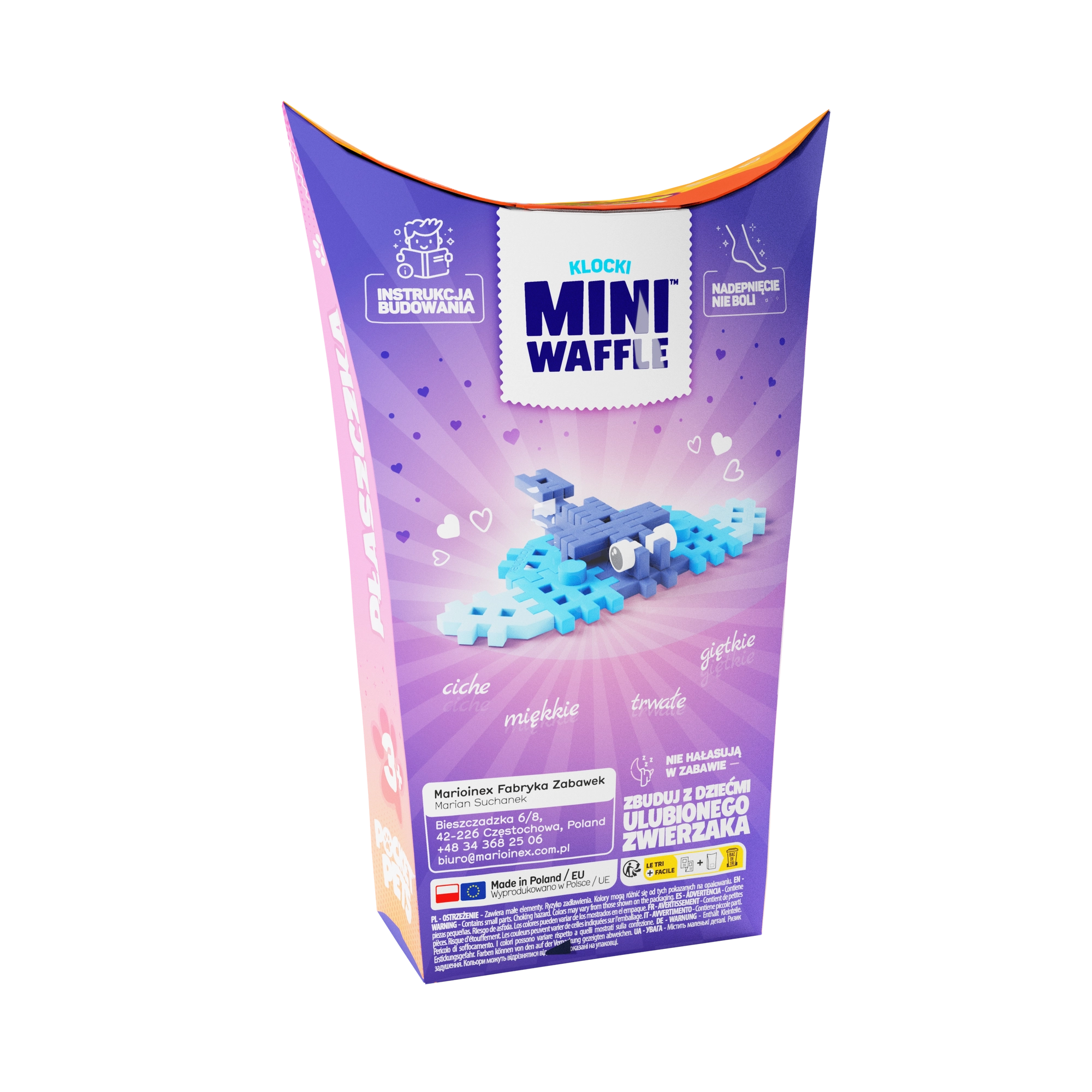 Ontdek de compacte Marioinex Mini Waffle-bouwset, waarmee kinderen een schattige pijlstaartrog kunnen bouwen van 25 kleurrijke stukjes. De blokjes zijn flexibel, duurzaam en veilig, klikken makkelijk in en uit elkaar en stimuleren creativiteit, fijne motoriek en logisch denken. Compatibel met andere Mini Waffle-sets voor eindeloze combinaties.