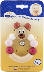 Een schattige houten rammelaar met een beertje in roze zal elke baby blij maken. Het geïntegreerde belletje rinkelt zacht, de rammelaar is zeer licht en dankzij de compacte afmetingen van 7 × 9 cm ligt hij perfect in kleine handjes. Het product voldoet aan de strenge EU-veiligheidseisen voor speelgoed en is voorzien van het certificaat Veilig speelgoed.