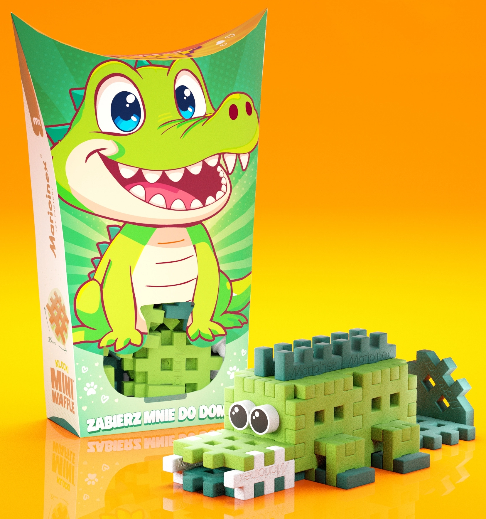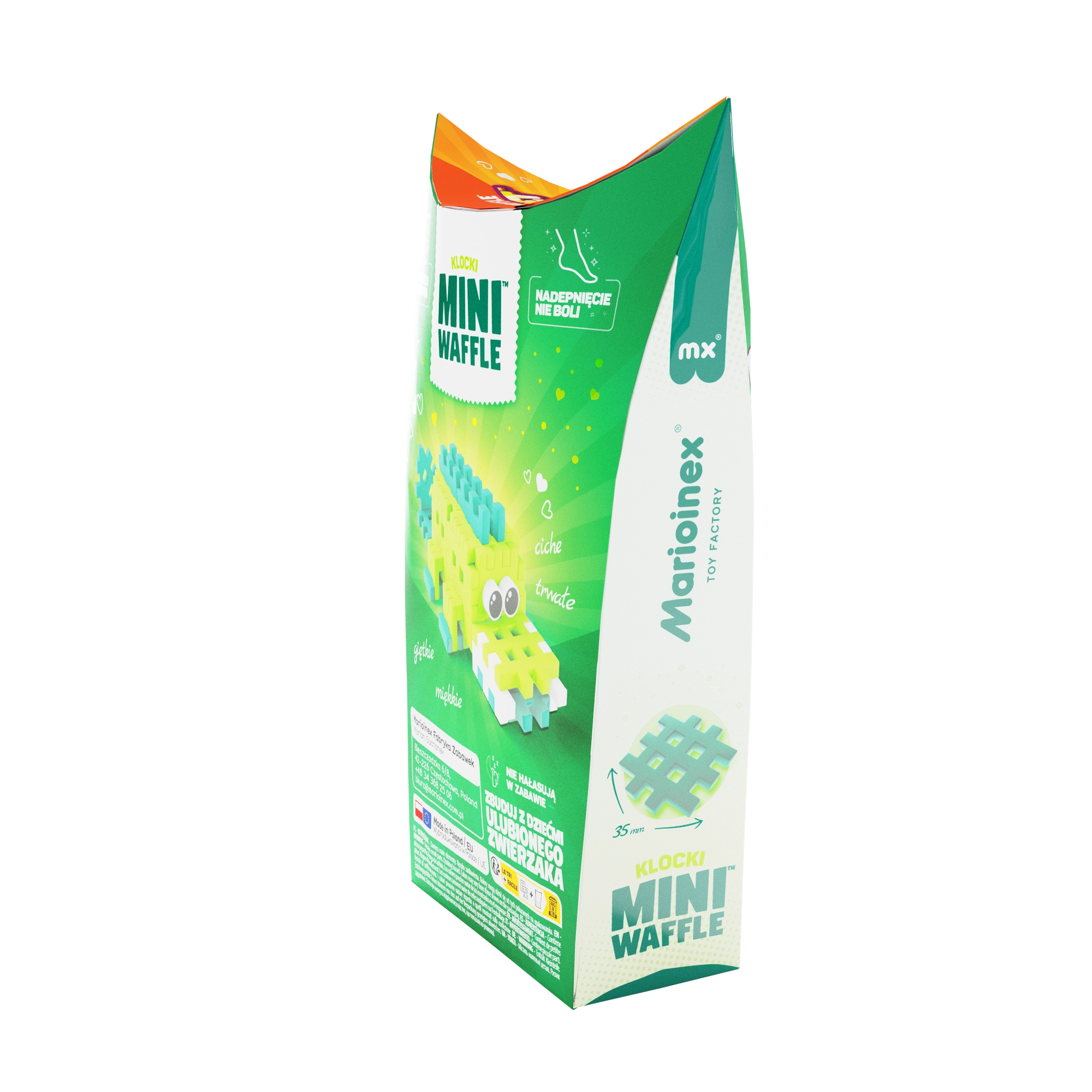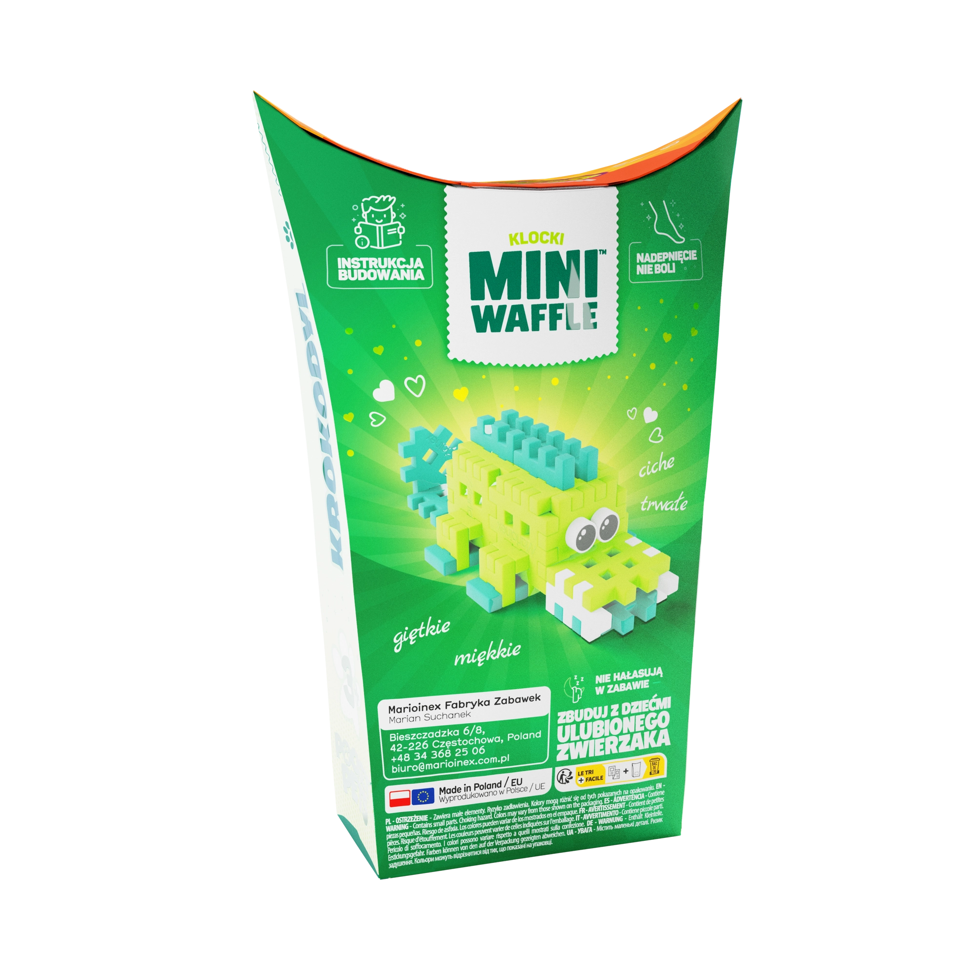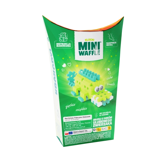 Ontdek de leuke bouwset Mini Waffle Pocket Pets – krokodil van het merk Marioinex. De compacte set met 34 kleurrijke onderdelen laat kinderen een schattige krokodilfiguur bouwen en stimuleert creativiteit, fijne motoriek en logisch denken. De onderdelen zijn elastisch, duurzaam en veilig, klikken eenvoudig in en uit elkaar en zijn perfect te combineren met andere Mini Waffle-sets.