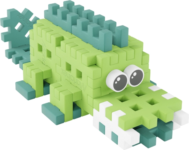 - 34 kleurrijke onderdelen om een schattige krokodil te bouwen.