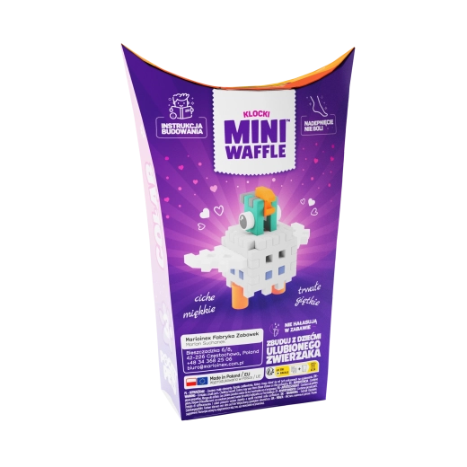 Ontdek de creatieve wereld van de Mini Waffle Pocket Pets-bouwset van Marioinex. De compacte set met 16 kleurrijke onderdelen laat kinderen een schattige duivenfiguur bouwen, stimuleert de verbeelding, de fijne motoriek en het logisch denken. De onderdelen zijn flexibel, duurzaam en veilig, ze klikken gemakkelijk in en uit elkaar en passen perfect bij andere Mini Waffle-sets voor eindeloos 2D- en 3D-bouwen.