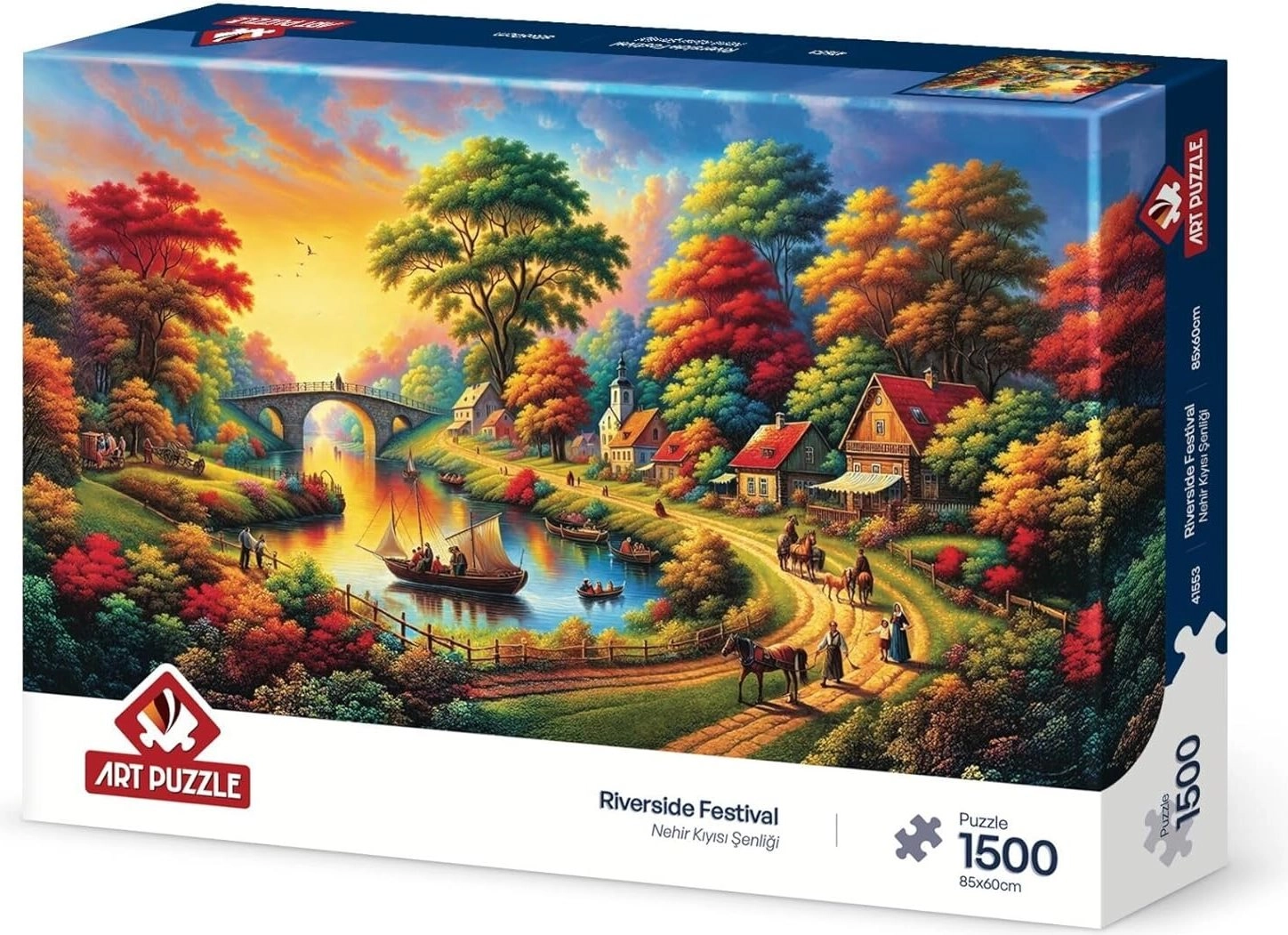 Ontdek het plezier van puzzelen met ART PUZZLE met 1500 stukjes. Het gedetailleerde motief van een festival aan de rivier zal liefhebbers van kleur, sfeer en uitgewerkte scènes bekoren. Dankzij de hoogwaardige druk en nauwkeurige stansvormen passen de stukjes perfect in elkaar en oogt het eindresultaat als een decoratieve poster.