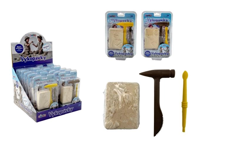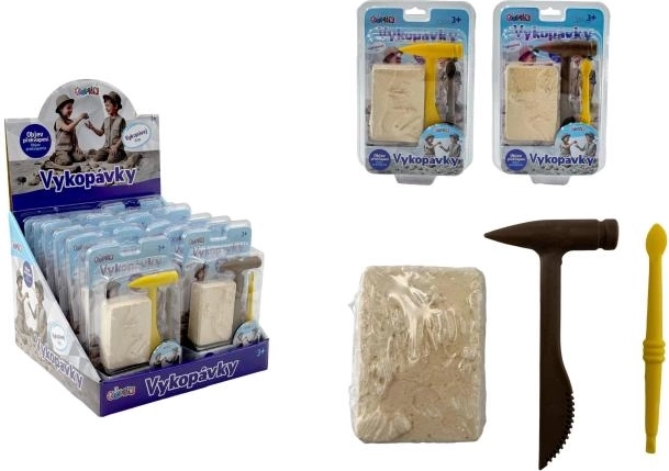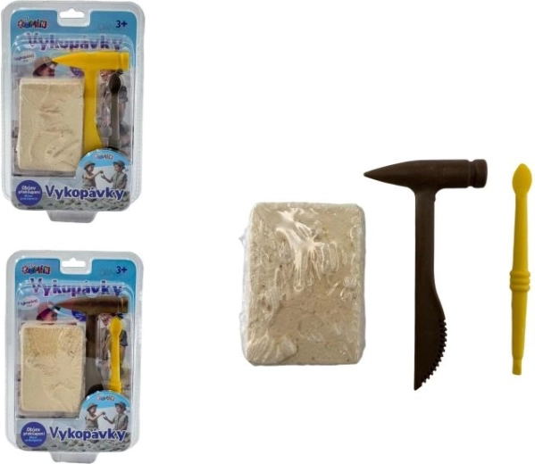 - Gipsblok met verborgen skelet, beitel, hamertje, kwast