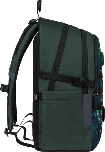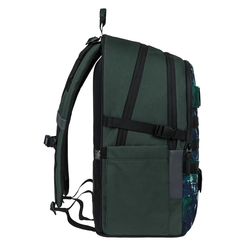Complete schooluitrusting in een uniform Forest-design voor oudere leerlingen en studenten. De set bevat een slijtvaste schoolrugzak met skateboardbevestiging, een ruim etui, een opvouwbare sporttas, een praktische heuptas en een beschermende laptophoes. Materialen met GRS-certificering, waterafstotende afwerking, veilige reflecterende elementen en betrouwbare YKK-ritsen zorgen voor comfort, orde en een lange levensduur.