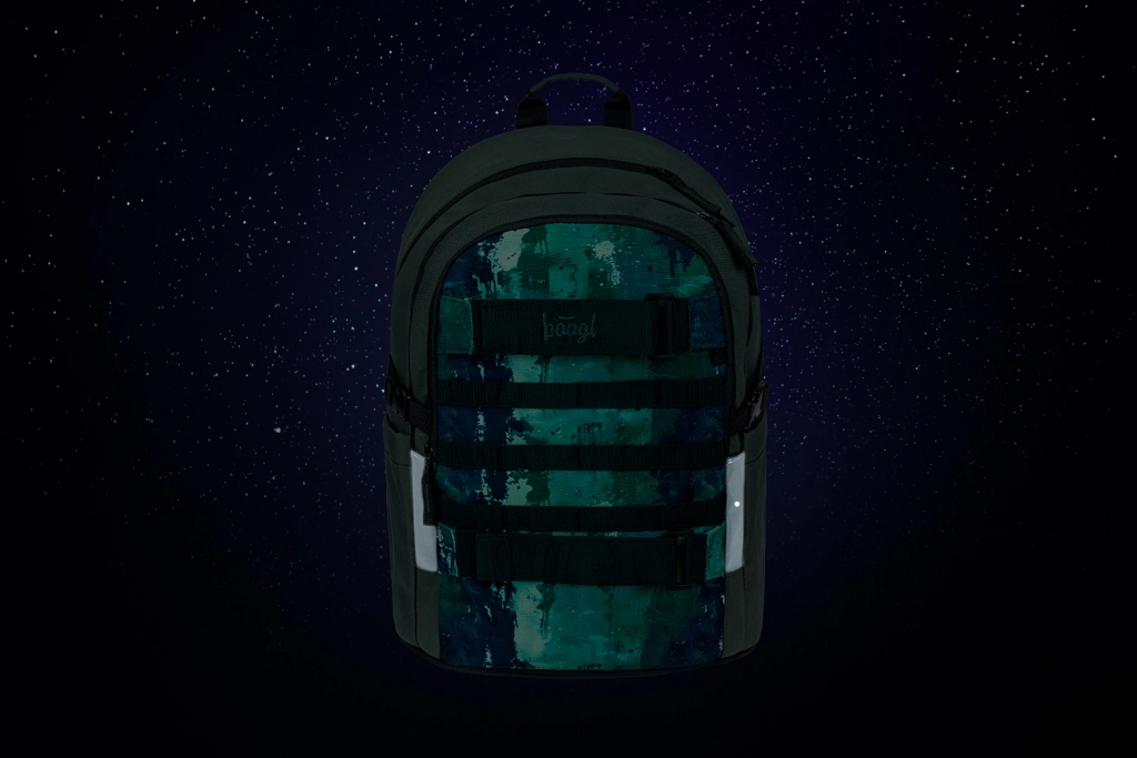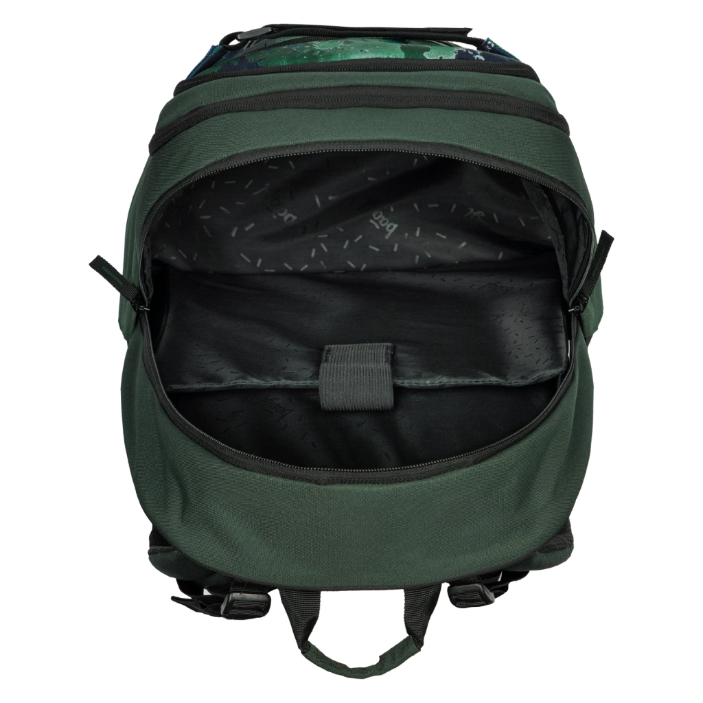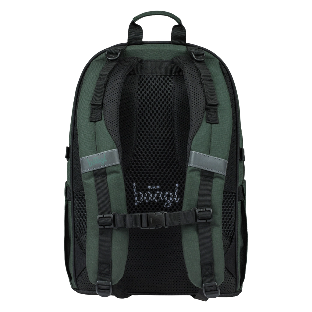 De Baagl Skate Forest schoolset is ontworpen voor dagelijks gebruik op school, tijdens trainingen en onderweg. De rugzak met anatomisch gevormde rug en compressieriemen biedt comfort, zelfs bij volle belasting; drie vakken met organizer en een gewatteerd vak voor een 15" laptop houden alles overzichtelijk geordend. Verder omvat de set een etui met dubbele flap, een compacte opvouwbare sporttas, een heuptas voor kleinigheden en een gewatteerde hoes voor apparaten.