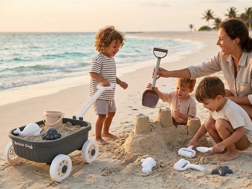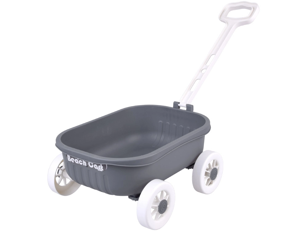 De diepe bak, afneembare trekstang en stabiele, brede wielen zorgen voor gemakkelijk transport van zand, speelgoed en gereedschap over diverse ondergronden – van tuin tot strand.