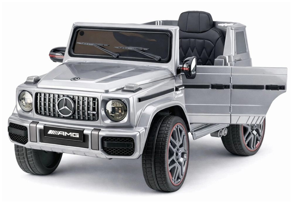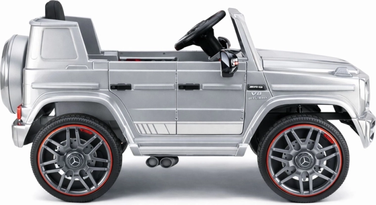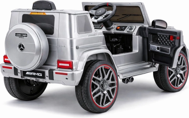 De elektrische speelgoedauto MERCEDES‑AMG G 63 is de perfecte keuze voor kinderen die houden van realistische details en avontuur. De precieze afwerking van de grille, koplampen en het interieur zorgt voor de sfeer van een echte auto, terwijl de robuuste wielen met opvallende velg de sportieve stijl benadrukken.