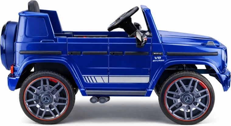 De gelicentieerde speelgoedauto, geïnspireerd op de iconische G‑klasse, biedt kinderen de beleving van het besturen van een echte SUV. De auto overtuigt met een realistisch instrumentenpaneel, functionele elementen en een premium gelakte afwerking die duurzaam en gemakkelijk te onderhouden is. Brede banden en een laag zwaartepunt verhogen de stabiliteit, ook op minder vlakke ondergrond.