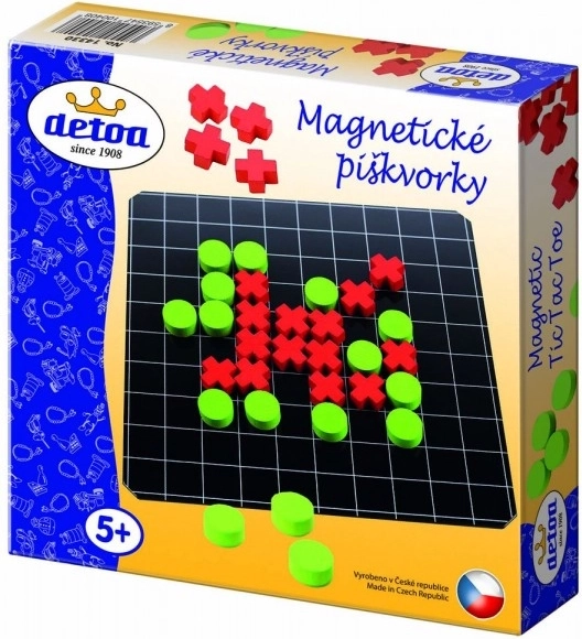 Magnetische boter-kaas-en-eieren Detoa is een populaire strategische spel voor twee spelers, ideaal voor onderweg. In de stijlvolle en praktische verpakking vind je een metalen speelbord en houten speelstukken met een magneet.