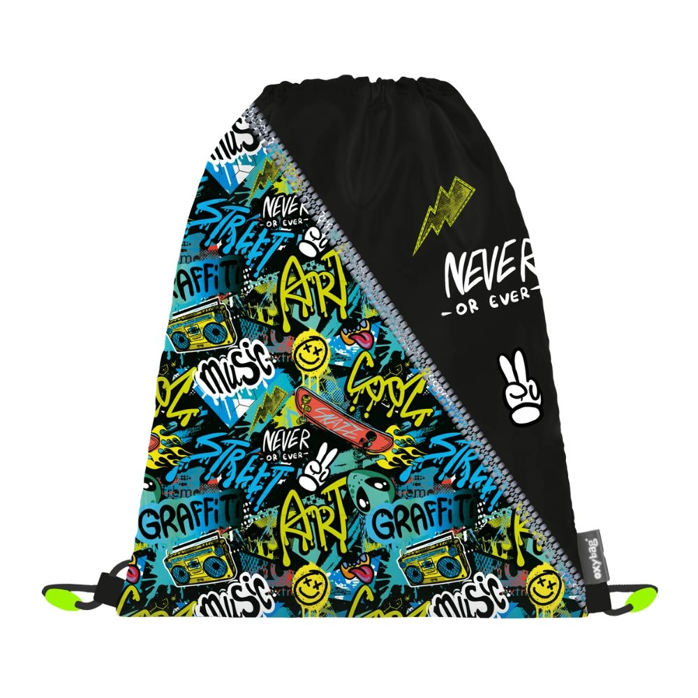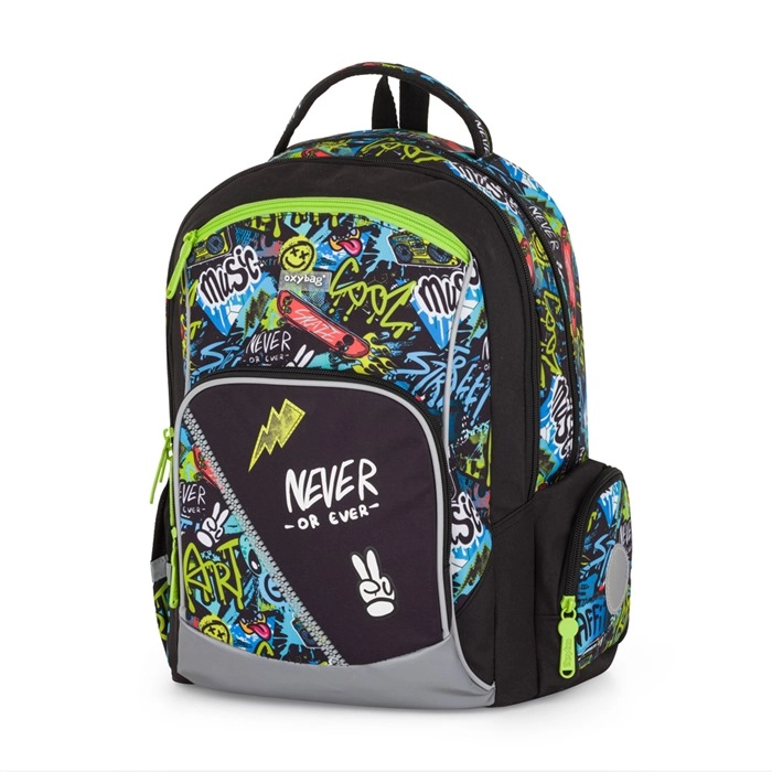 Stijlvolle schoolset voor groep 3–5 bevat een ergonomische Oxy Go rugzak, een gym-/schoenenzak en een etui met één vak. De rugzak heeft anatomisch gevormde, ademende rugpadding, gepolsterde schouderbanden en reflecterende elementen voor veiligheid. Biedt doordachte indeling, een stevig waterdicht bodemdeel en zijvakken voor fles en kleinigheden. Het design met graffitiprint en neonaccenten maakt kinderen enthousiast.