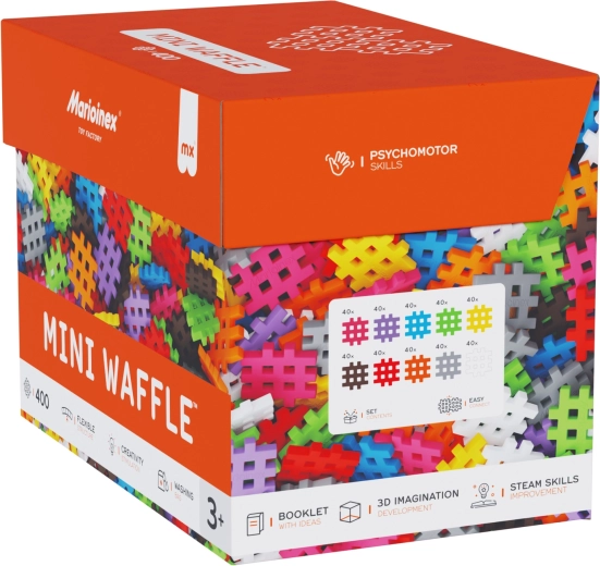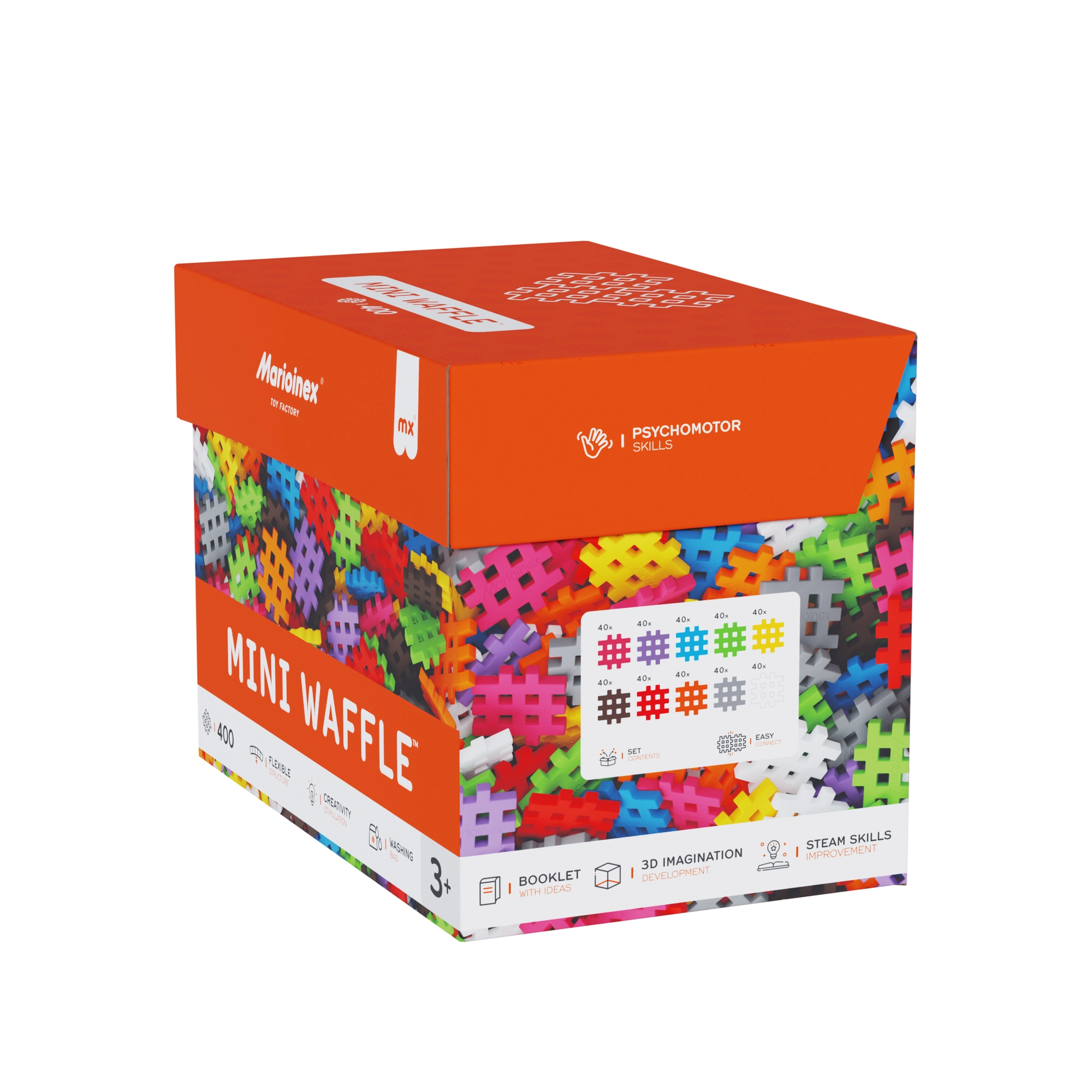 De Marioinex Mini Waffle bouwset biedt kinderen een speelse manier om te leren. Dankzij het zachte materiaal en de slimme vorm zijn de stukjes eenvoudig te verbinden en weer los te maken, en liggen ze prettig in kleine handen. 400 onderdelen in levendige kleuren nodigen uit tot vrij bouwen of het volgen van instructies – van eenvoudige modellen tot fantasierijke 3D-constructies.