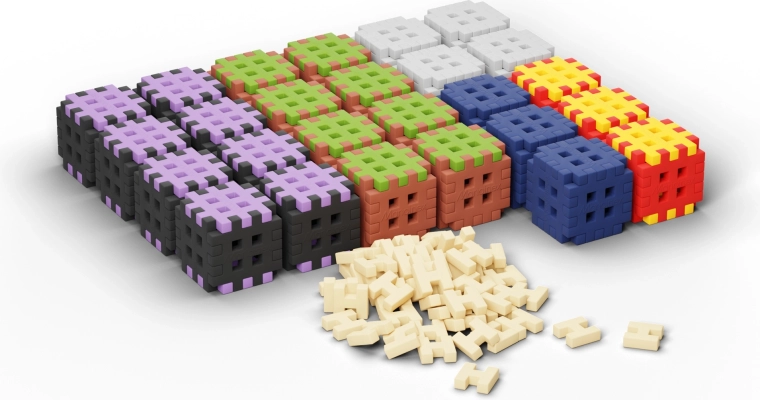 Het waffle-ontwerp met een raster van openingen maakt stevige, multidirectionele verbindingen en stabiele 3D-constructies mogelijk die naar wens kunnen worden omgebouwd.