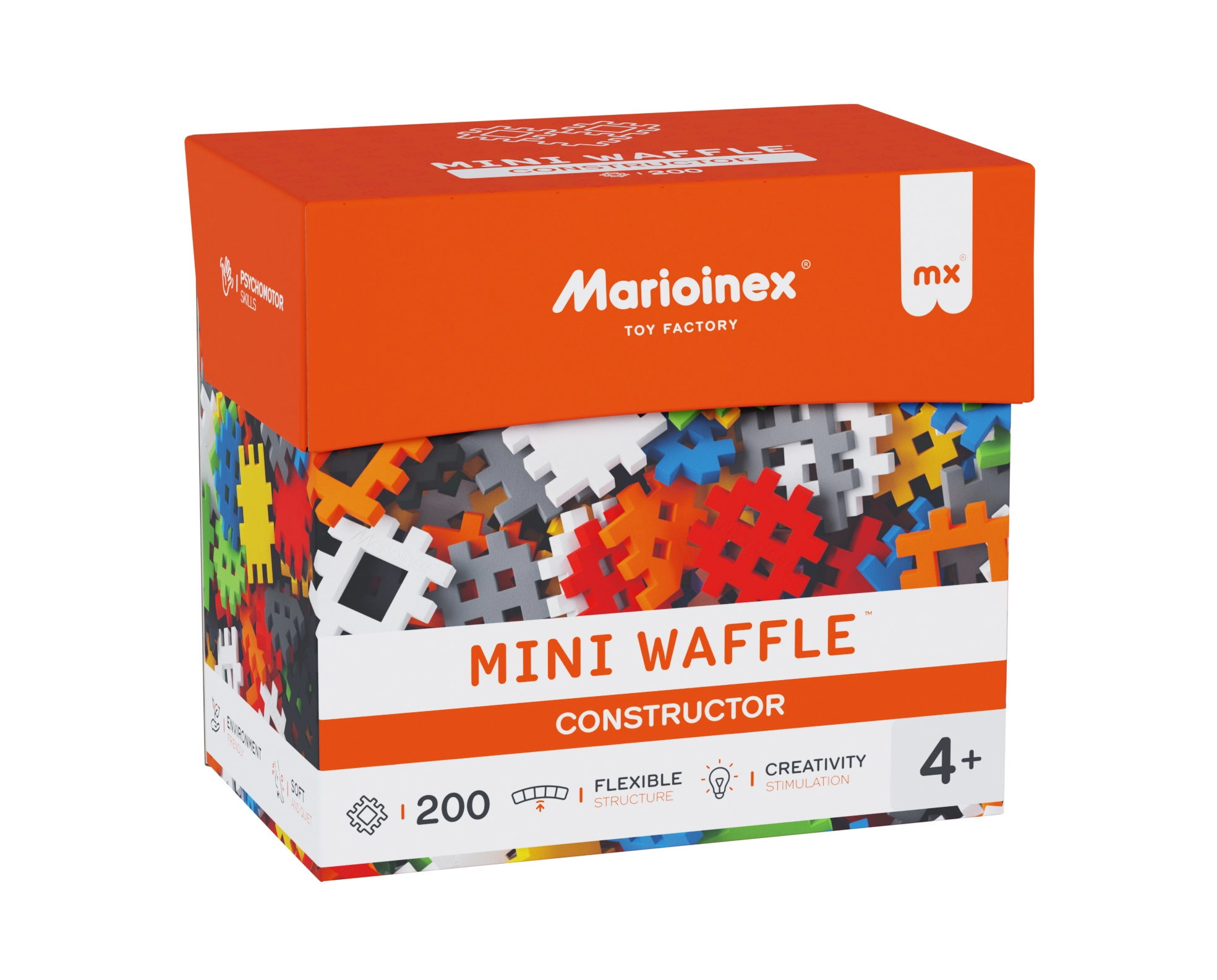 De MARIOINEX Mini Waffle Constructor combineert plezier en leren in één. Dankzij de unieke vorm van de onderdelen zet je modellen gemakkelijk in elkaar en blijven ze stevig zitten, terwijl je ze net zo eenvoudig weer uit elkaar haalt. Een inspirerend boekje met ideeën helpt bij de eerste creaties en prikkelt verdere fantasie.