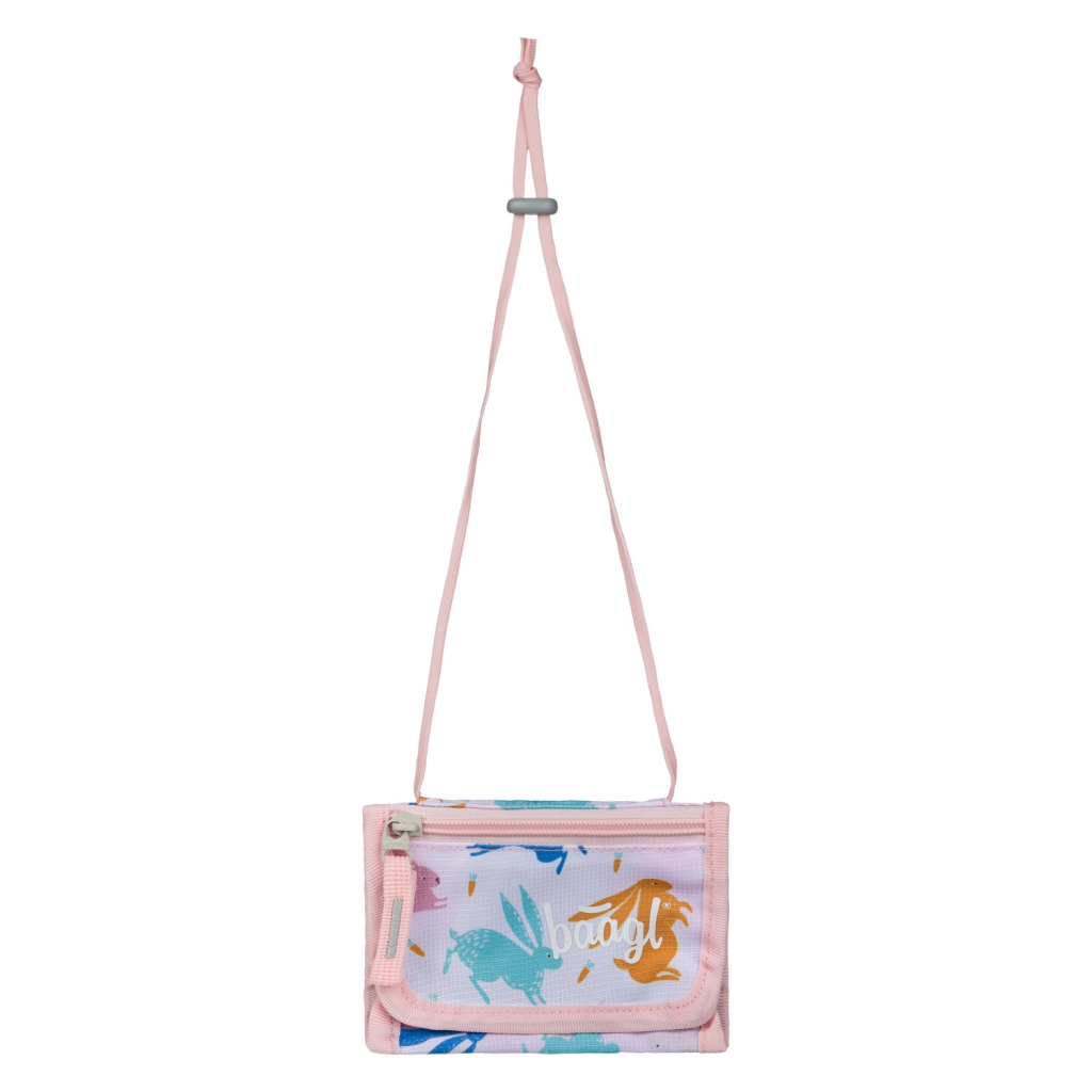 Set 5-in-1: boekentas, etui, zak met vak, schort en halsportemonnee. Duurzame, afwasbare materialen en een afgestemd design met konijnenmotief.