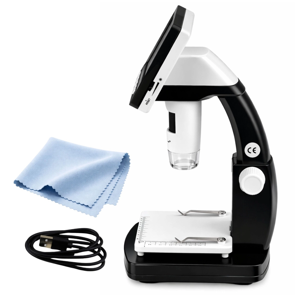 Ontdek de details van de wereld om je heen met deze digitale microscoop, die een scherp 4,3" IPS‑display, hoge vergroting tot 1000× en precieze handmatige scherpstelling combineert. Dankzij 8 LED's zie je fijne structuren van materialen, elektronica of biologische monsters onder alle omstandigheden.