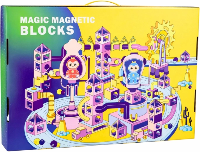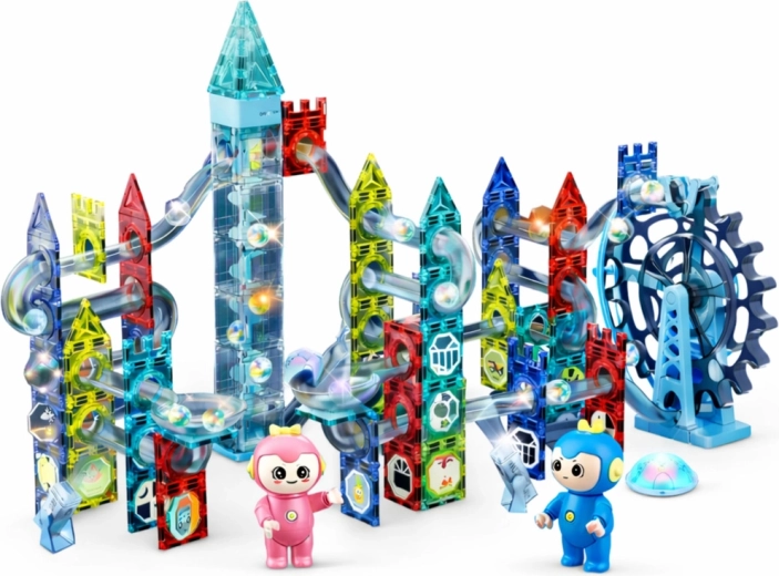 De moderne set magnetische bouwstenen maakt het mogelijk om diverse 3D-constructies en dynamische knikkerbanen te bouwen met transparante, gekleurde elementen. Magnetische koppelingen zorgen voor snel en stabiel bouwen, zodat kinderen zich volledig kunnen richten op creëren en experimenteren met de snelheid en richting van de knikkers.