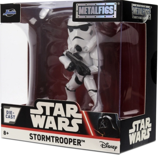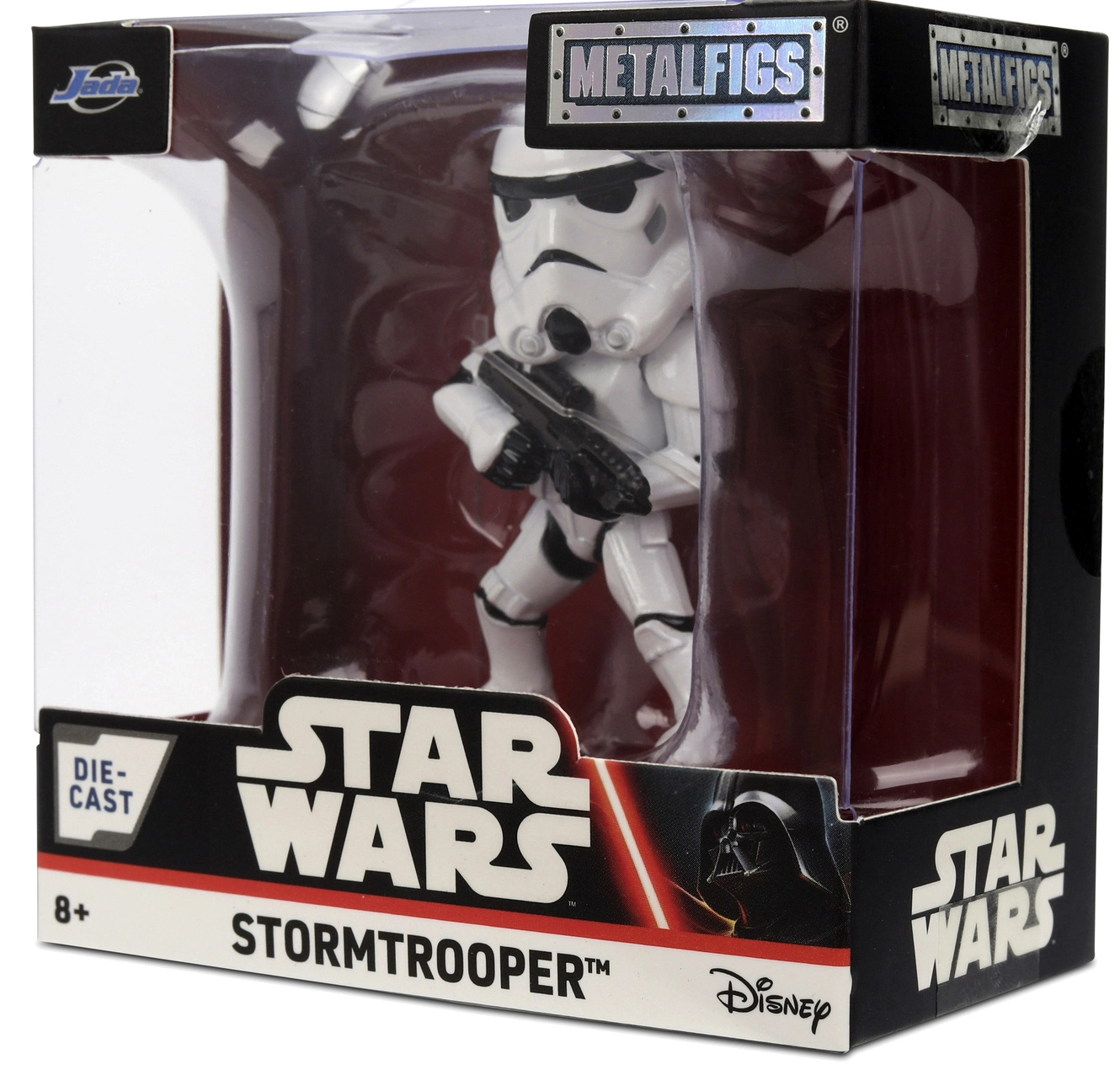 Metalen figurine van STAR WARS Stormtrooper van Jada Toys met een hoogte van ca. 5,5 cm, een gelicentieerd verzamelobject uit de Nano Metalfigs-serie. Biedt een stevige metalen uitvoering, een stabiele voet en een compact formaat, ideaal voor verzamelaars en kinderen vanaf 8 jaar.