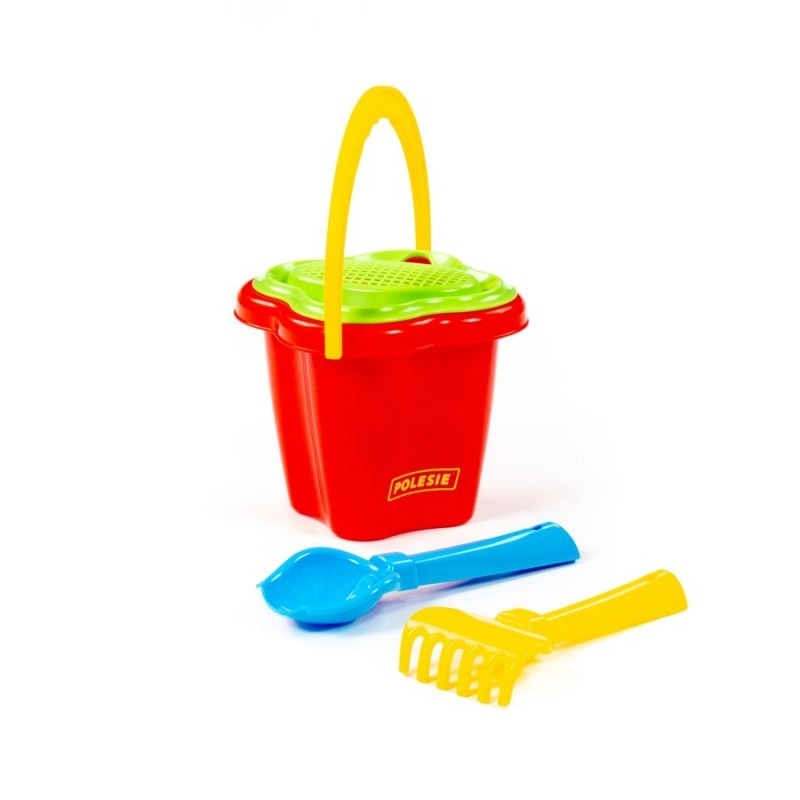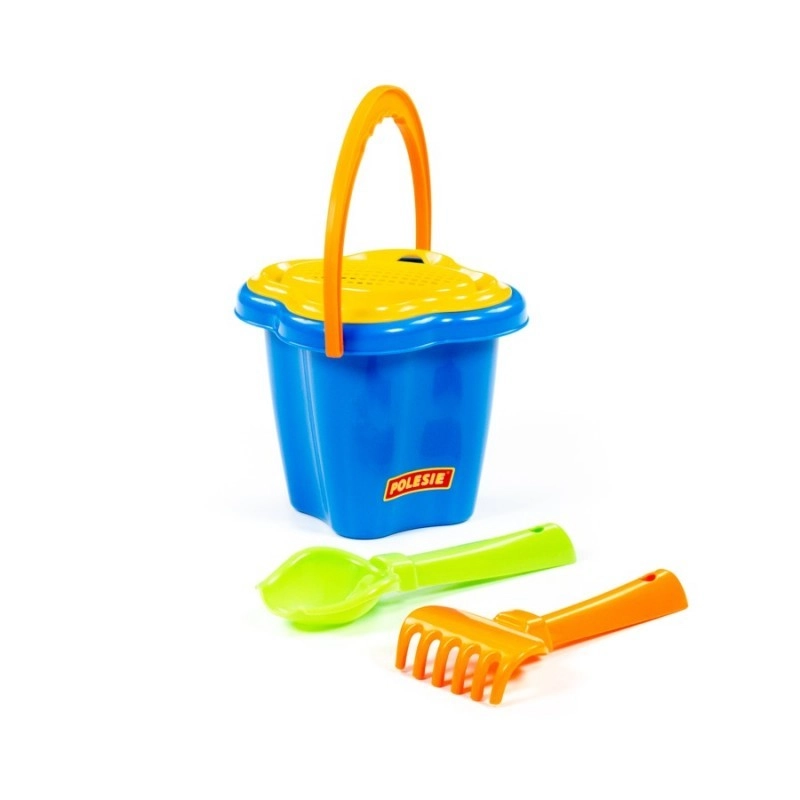 In de verpakking vind je een schepje, hark en zeef/deksel met net, zodat kinderen alle zandactiviteiten aankunnen, van de basis tot aan de details.