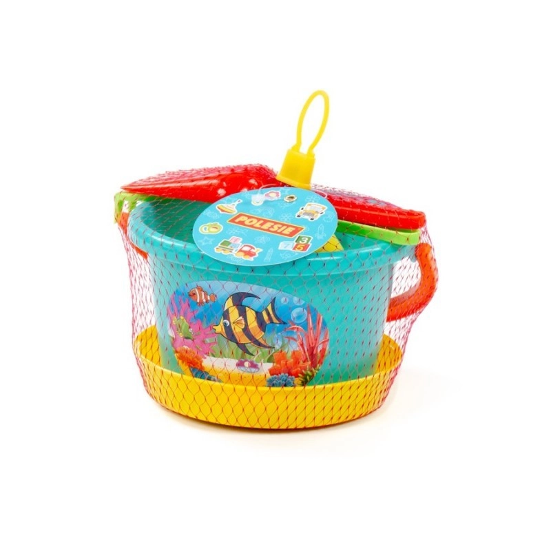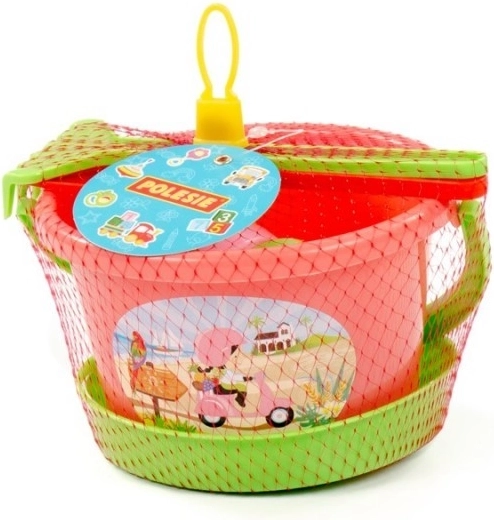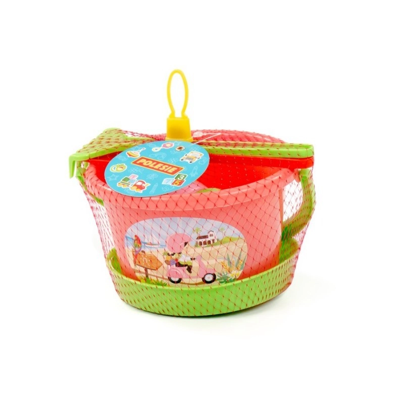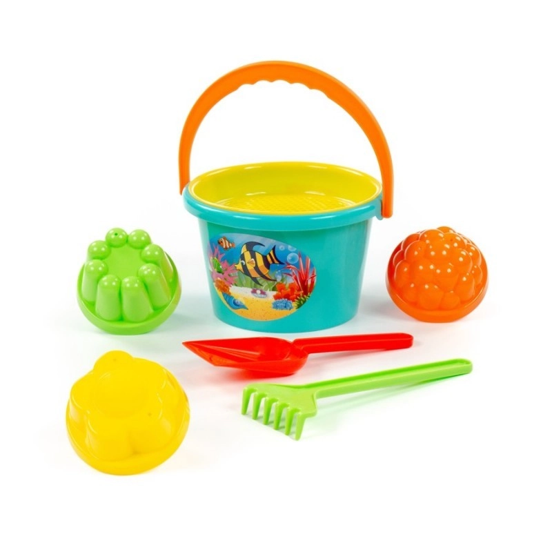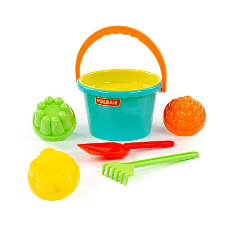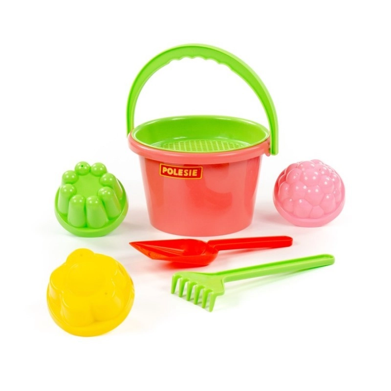 - Complete uitrusting voor spelen in het zand – emmertje, zeef, schepje, hark en vormpjes.