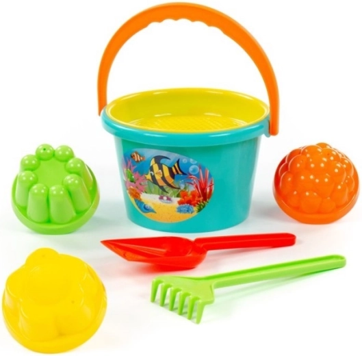 Deze zandset voor kinderen bevat alles wat je nodig hebt voor buitenplezier: een emmertje met zeef, een schepje, een hark en vormpjes. De lichte en duurzame kunststof zorgt voor veilig gebruik en eenvoudig onderhoud. Dankzij de vrolijke kleuren is spelen nog aantrekkelijker en wordt de verbeelding geprikkeld.