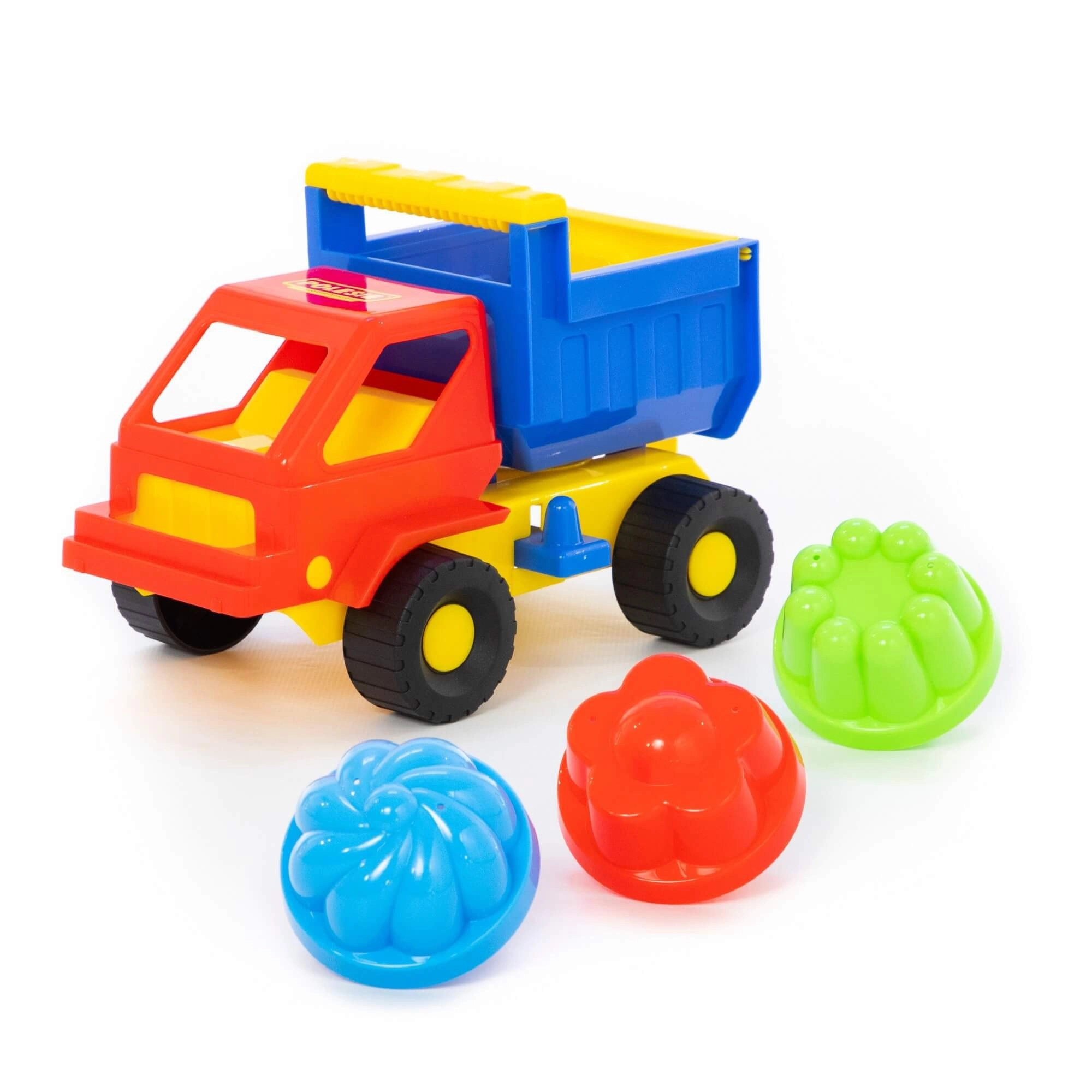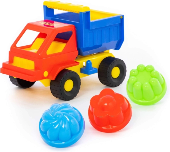 Met deze kleurrijke zandset beleven kinderen veel plezier bij het bouwen van kastelen, tunnels en vormen. Het robuuste autootje met kiepbare laadbak is ideaal voor het vervoeren van zand, steentjes en kleine schatten, terwijl de drie vormpjes creatief spel stimuleren.