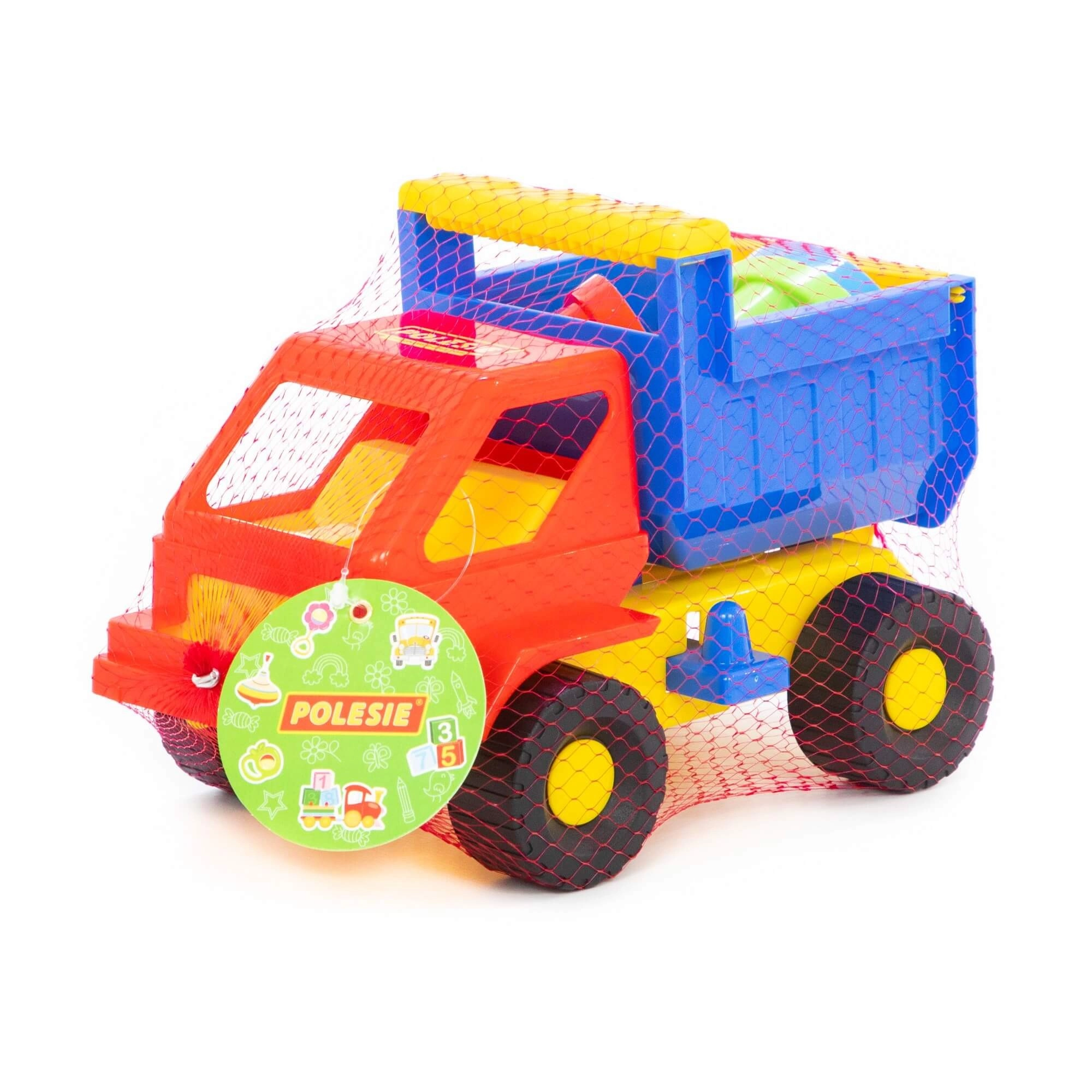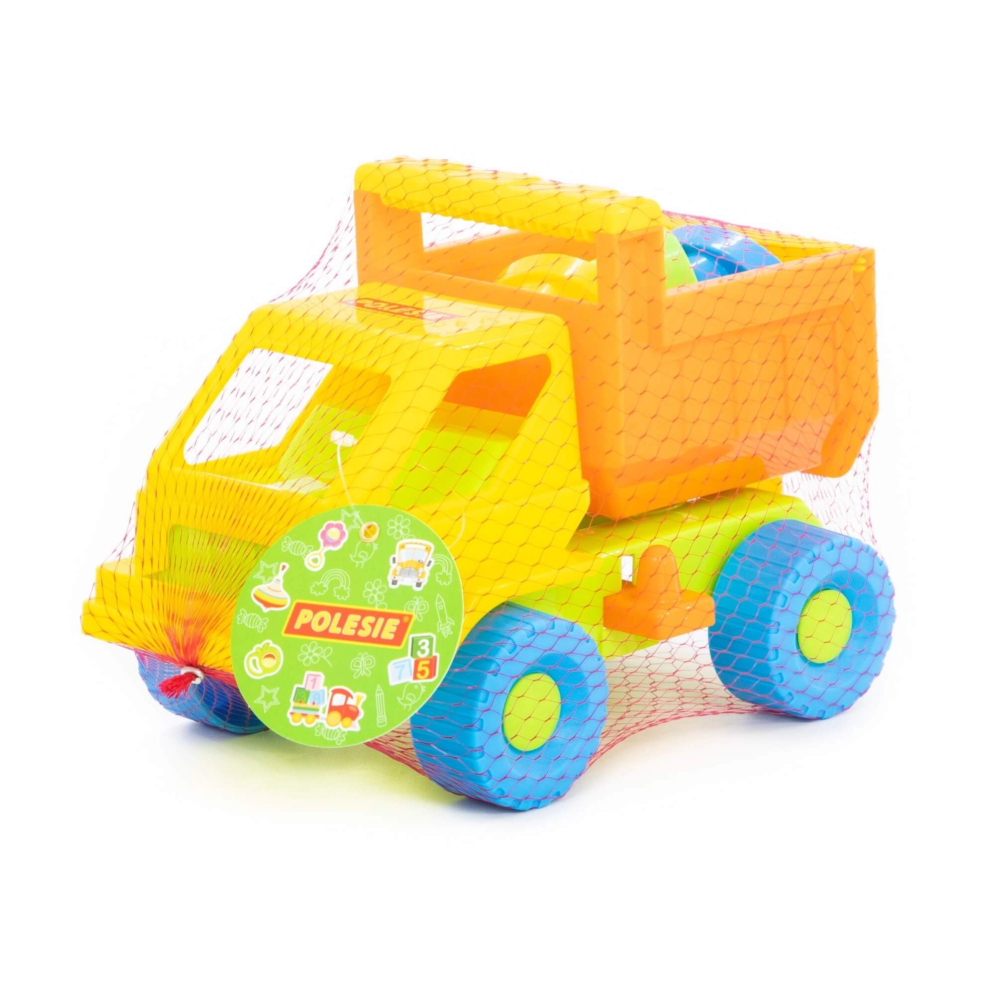 De kleurrijke vrachtwagen vervoert eenvoudig zand en dankzij de kiepbare laadbak kan de lading snel worden gelost. Perfect voor realistisch bouwplaats-spel.
