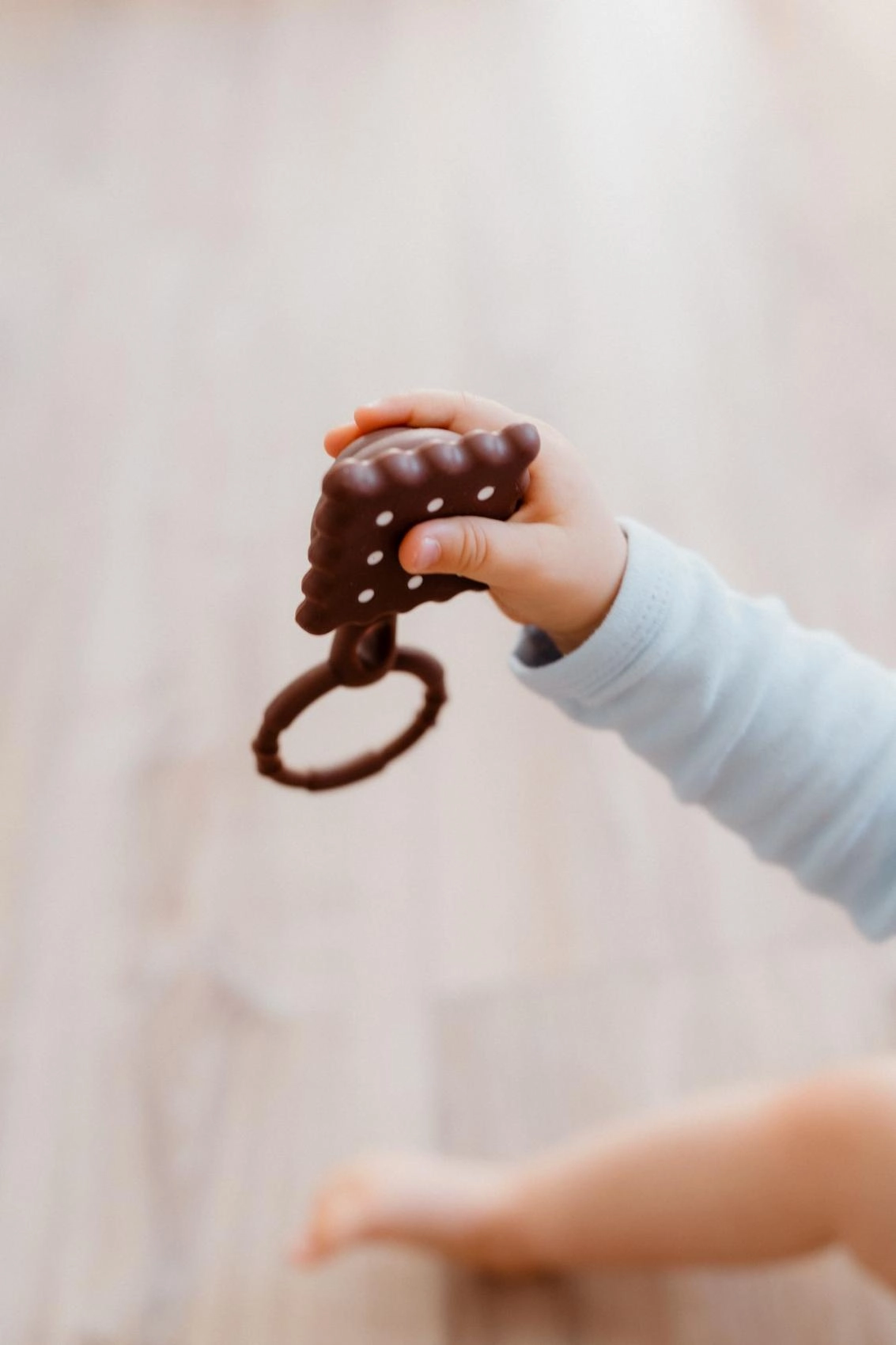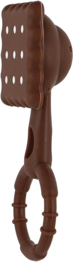 Zoek je een eerste speeltje voor je baby dat boeit en tegelijk de ontwikkeling ondersteunt? De siliconen rammelaar en bijtring in de vorm van een koekje biedt veilige verlichting bij doorkomende tandjes, eenvoudig vasthouden en zintuiglijke stimulatie in één. Dankzij de lichte constructie kan het kind het gemakkelijk grijpen en er zelfstandig mee spelen, thuis en onderweg.