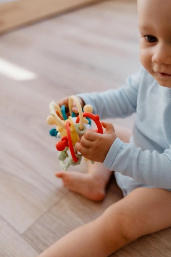 De verstrengelde bogen zorgen voor een stevige grip in elke positie, ondersteunen de coördinatie en stimuleren zelfstandig spel vanaf 6 maanden.