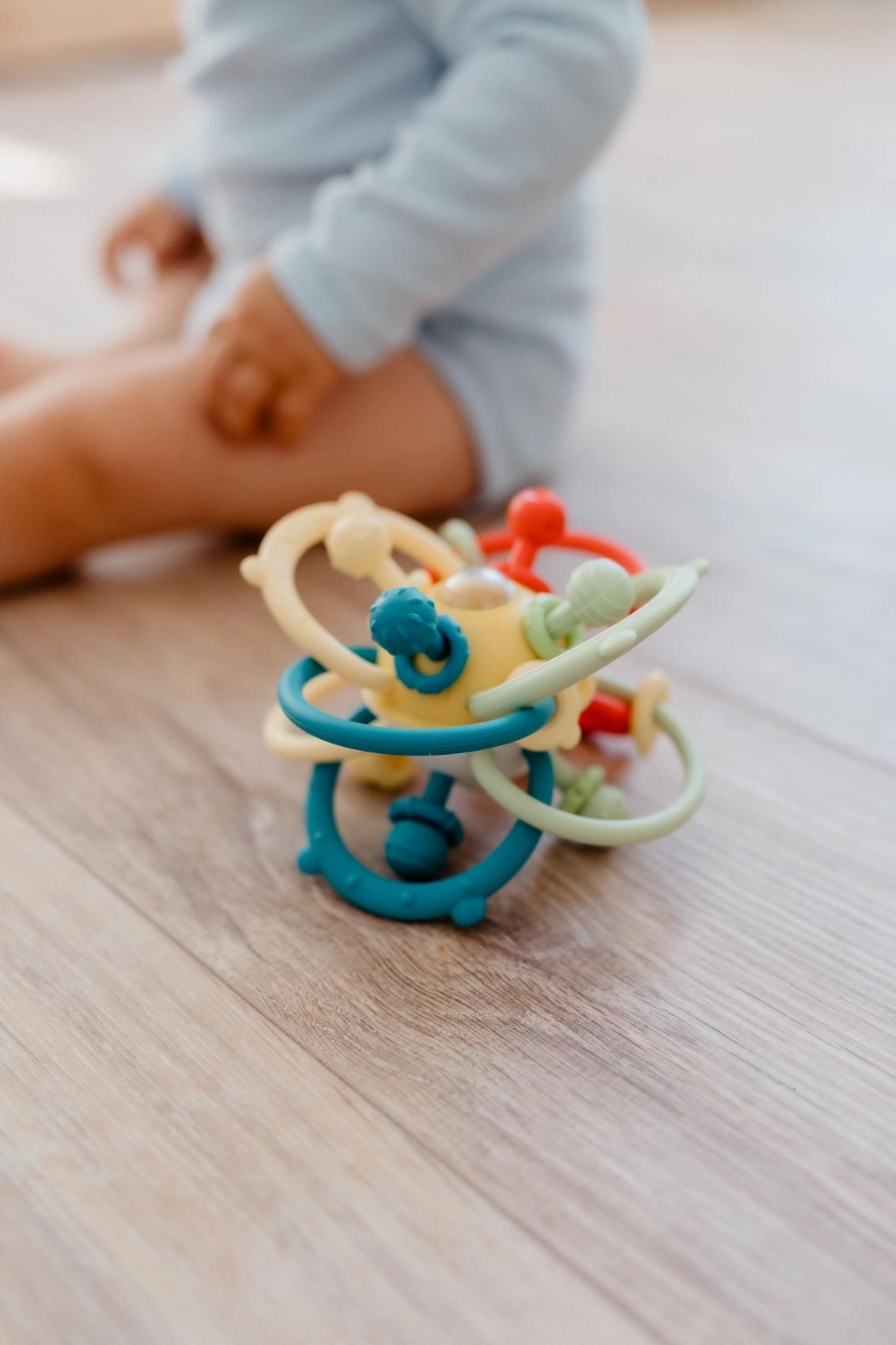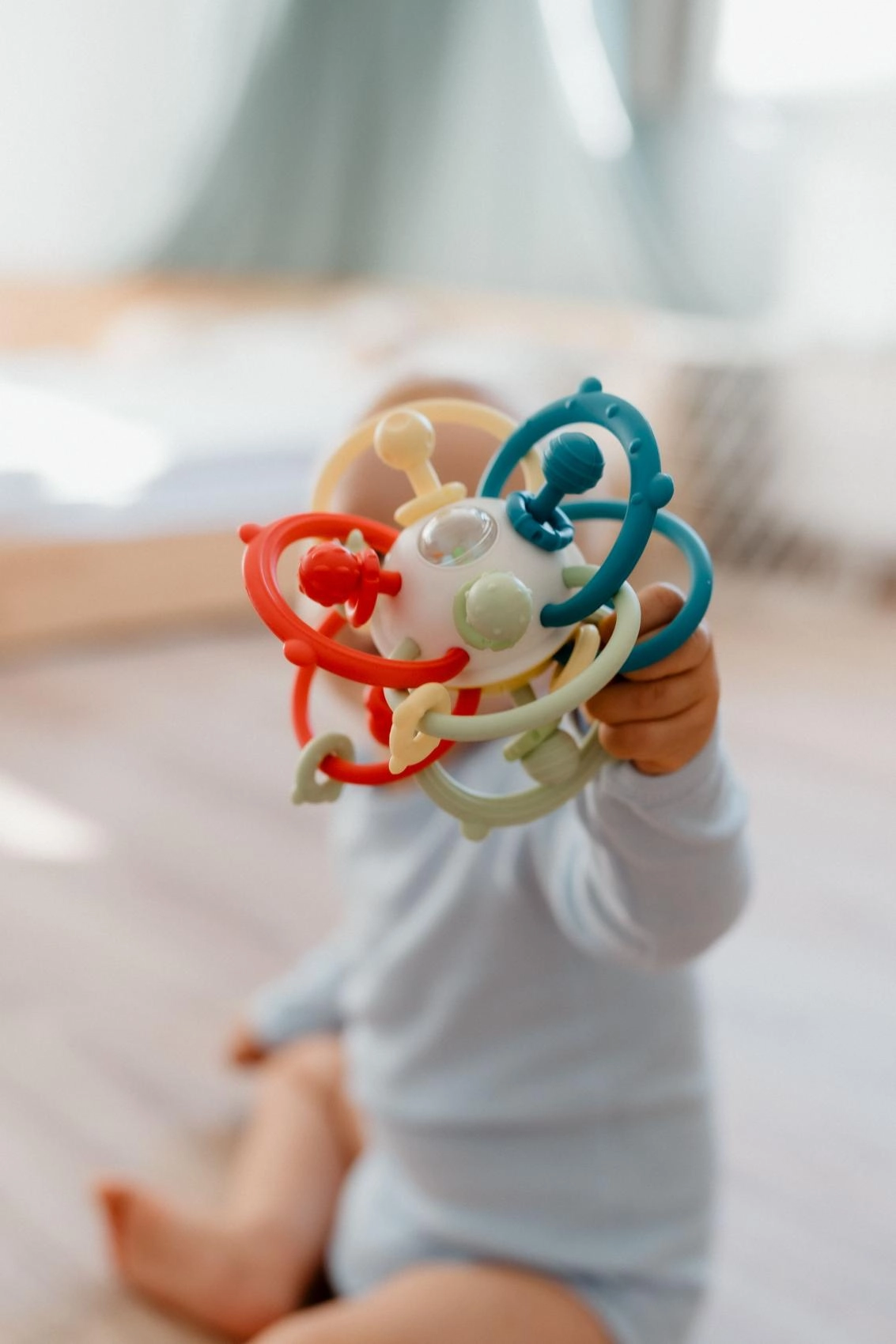 Een favoriet speeltje voor de allerkleinsten dat rammelaar en bijtring in één combineert. De verstrengelde bogen liggen prettig in kleine handjes, de diverse texturen nodigen uit om te ontdekken en de veilige materialen verzachten het tandvlees tijdens het bijten. Dankzij het lichte ontwerp is het ideaal voor thuis en onderweg.