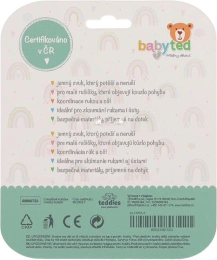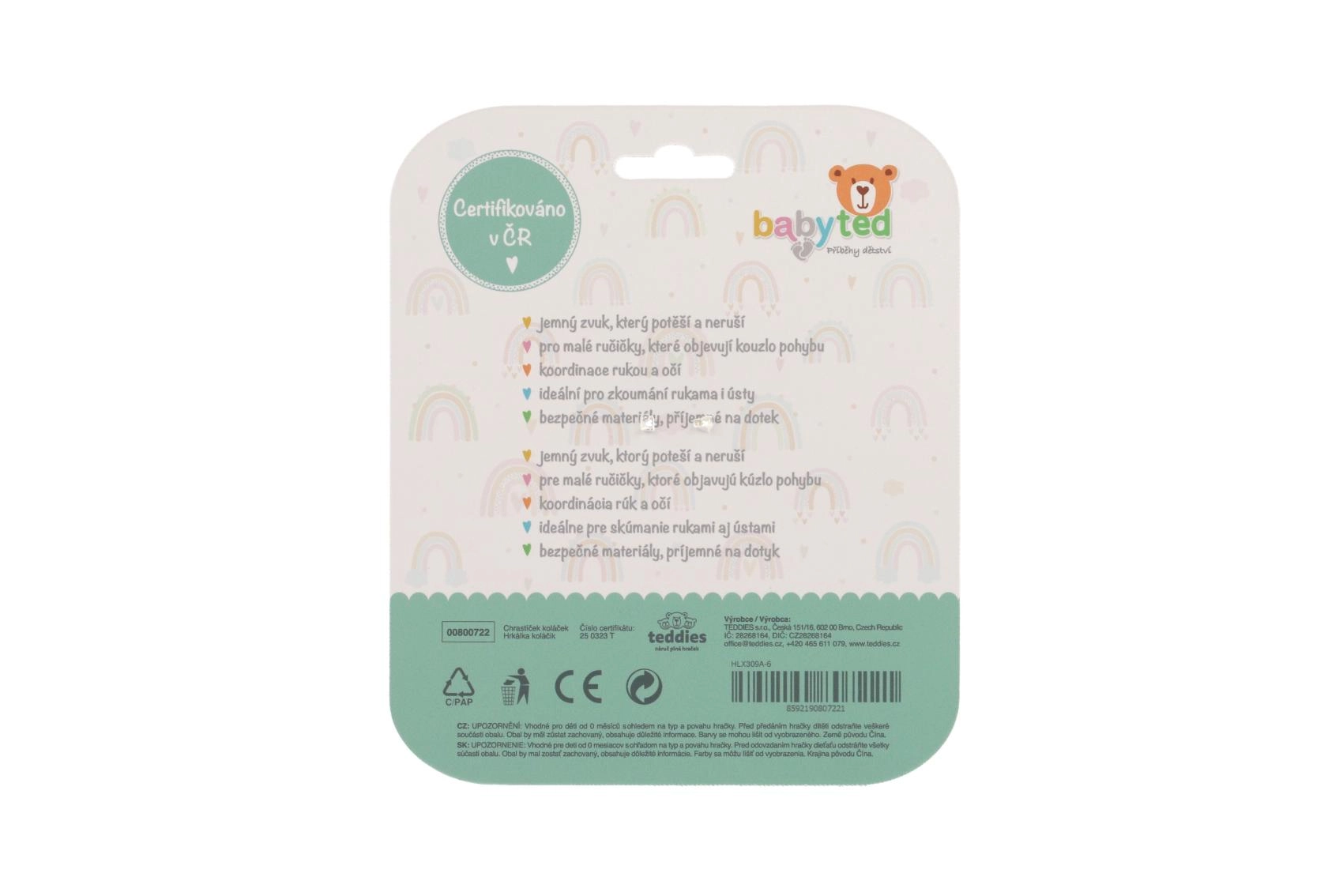 Eerste aanrakingen, eerste glimlachjes – de siliconen BABYTED rammelaar en bijtring biedt comfort en plezier vanaf 0 m+. Het speelse bloemendesign trekt meteen de aandacht en de ergonomische ring zorgt voor een zekere grip. De zachte, voedselveilige siliconen voelt prettig aan, is veilig voor het tandvlees en eenvoudig te reinigen.