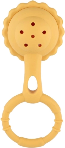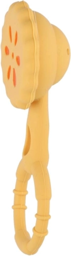 De kop van de bijtring van zachte siliconen masseert het tandvlees voorzichtig en biedt verlichting bij het doorkomen van de eerste tandjes.