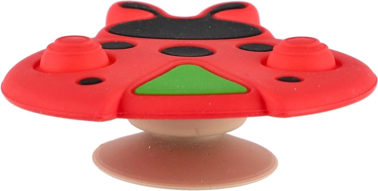 Deze sensorische speelgoedlieveheersbeestje is ideaal voor de eerste ontdekkingen. Dankzij de combinatie van zachte siliconen en stevig plastic is het prettig om aan te raken, veilig en bestand tegen dagelijks gebruik. De zuignap maakt het eenvoudig om het speelgoed op tafel, kinderstoel of in bad te bevestigen, zodat het op zijn plek blijft en je kind het comfortabel kan verkennen.