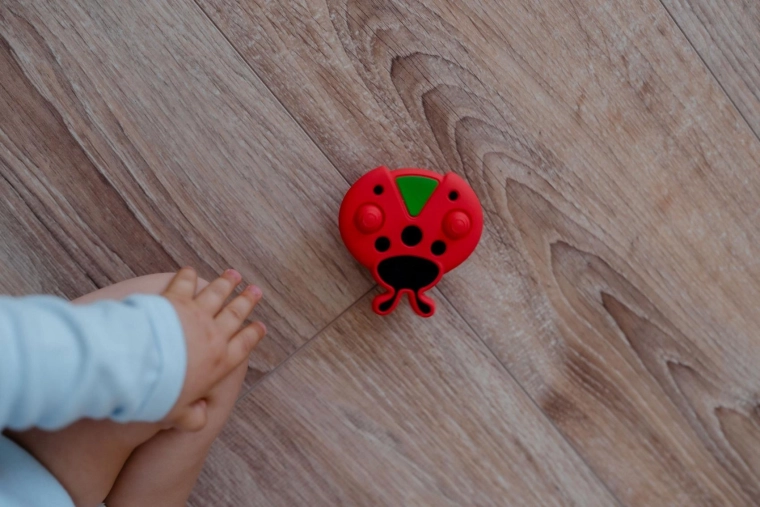 Bevestig het lieveheersbeestje op een glad oppervlak en laat je kind veilig ontdekken zonder dat het steeds op de grond valt.