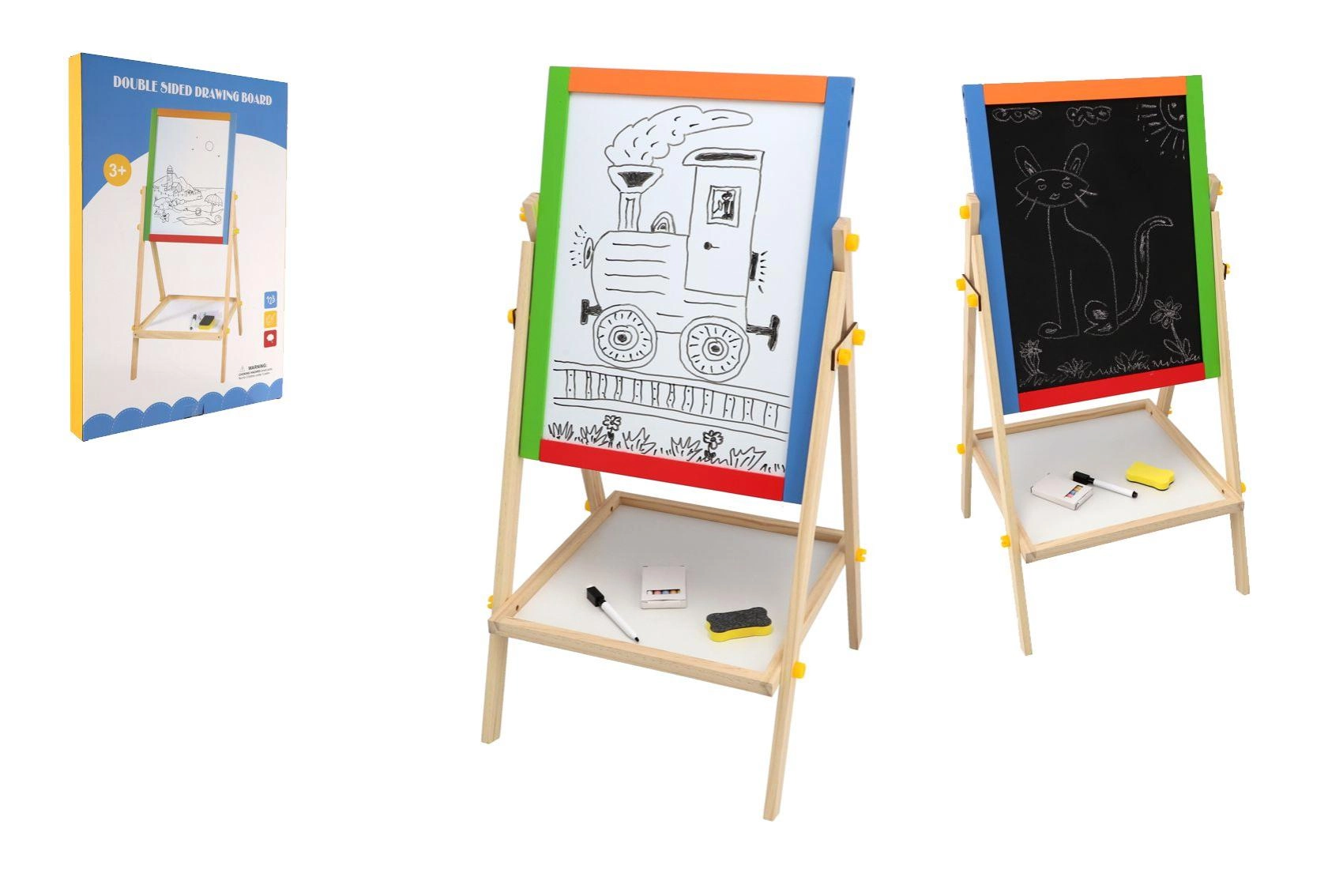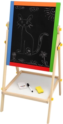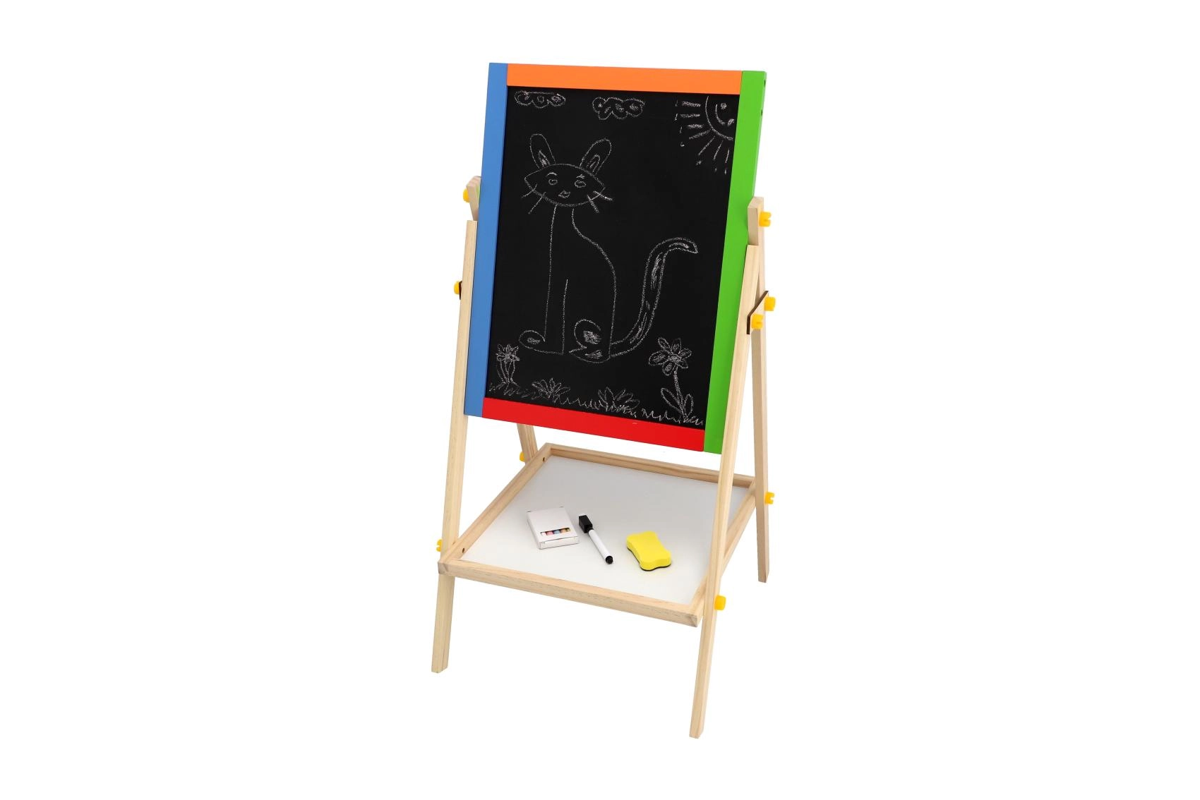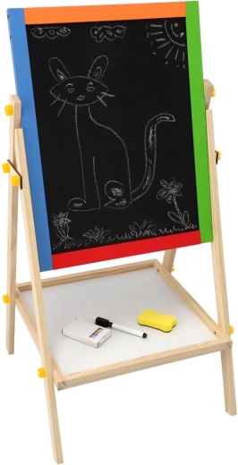 Dit dubbelzijdige bord stimuleert creativiteit, fijne motoriek en eerste schoolvaardigheden. Kinderen kunnen afwisselen tussen tekenen met krijt en schrijven met stift, letters leren met magneetjes en rekenen oefenen – allemaal op één plek.