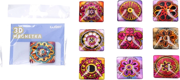 Ontdek een elegante accessoire voor thuis en op kantoor: een glazen magneet met een modern mandalamotief. Dankzij het compacte formaat van 4 × 4 cm past hij moeiteloos op elk metalen oppervlak en valt hij op door zijn design. Elk stuk is gemaakt van hoogwaardig glas dat de kleuren versterkt en de print beschermt tegen slijtage.