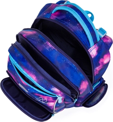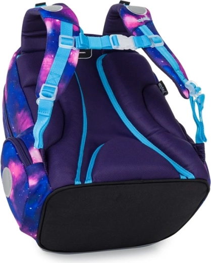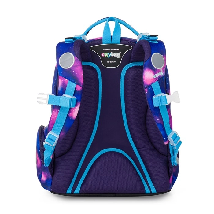 De Oxy Go Vlinder-set in een galactisch design met vlinder oogt fraai en is functioneel. De rugzak biedt comfort dankzij de ergonomische, gewatteerde rug en de verstelbare schouderbanden met haakjes om langere uiteinden vast te zetten. Meerdere vakken en compartimenten zorgen voor overzichtelijke opslag van boeken, schriften en kleinigheden; in de zijvakken past ook een drinkfles.