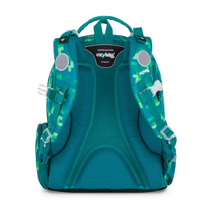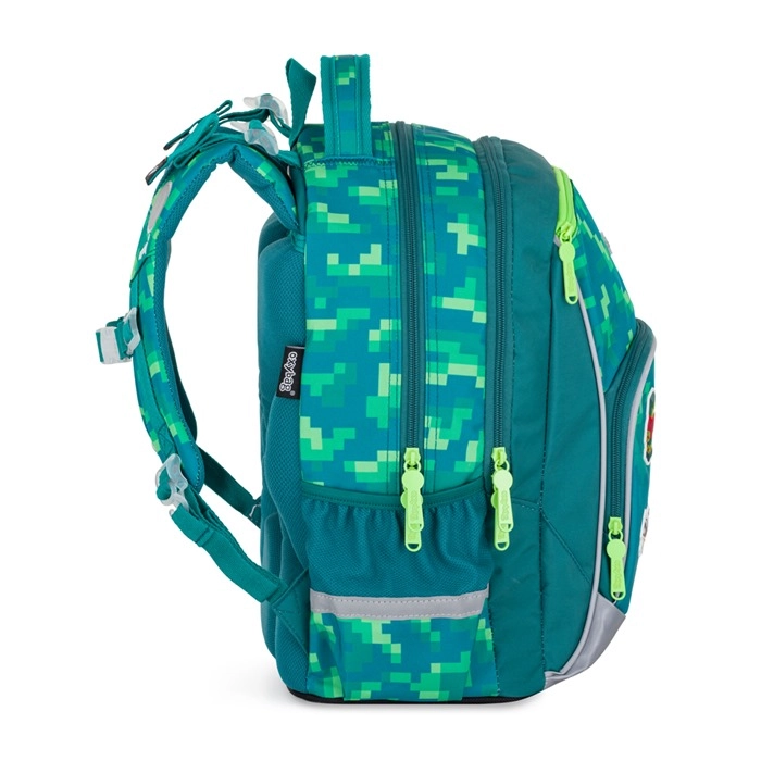 De schoolrugzak Oxy Go Playworld met modern pixelontwerp is een uitstekende keuze voor jongere schoolkinderen vanaf 125 cm lengte. Hij biedt twee hoofdvakken voor overzichtelijke opslag van boeken en schriften, zijvakken voor een fles en kleine spullen en tal van kleinere vakken voor perfecte organisatie. Anatomisch gevormde rug met padding en verstelbare banden zorgen de hele schooldag voor comfort.