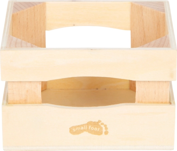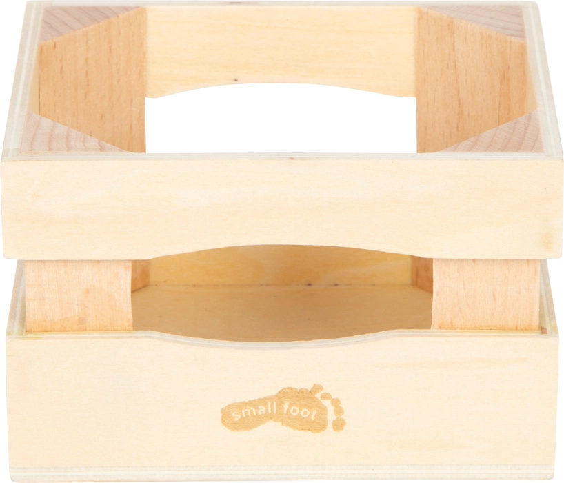 De kist met uitsparingen voor gemakkelijk vastpakken dient als overzichtelijke opbergruimte en als accessoire voor het kinderwinkeltje. De set sluit visueel aan bij de “fresh”-productlijn en kan eenvoudig worden gecombineerd met andere houten etenswaren voor nog gevarieerder kook- en serveerspel.