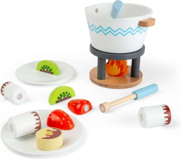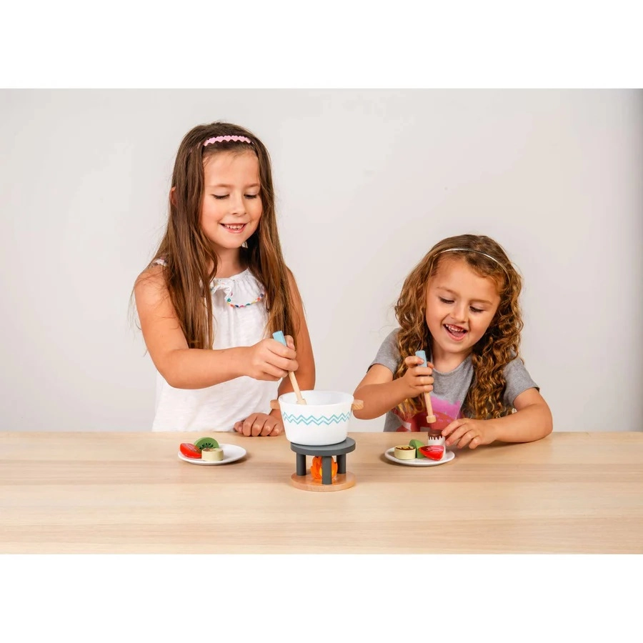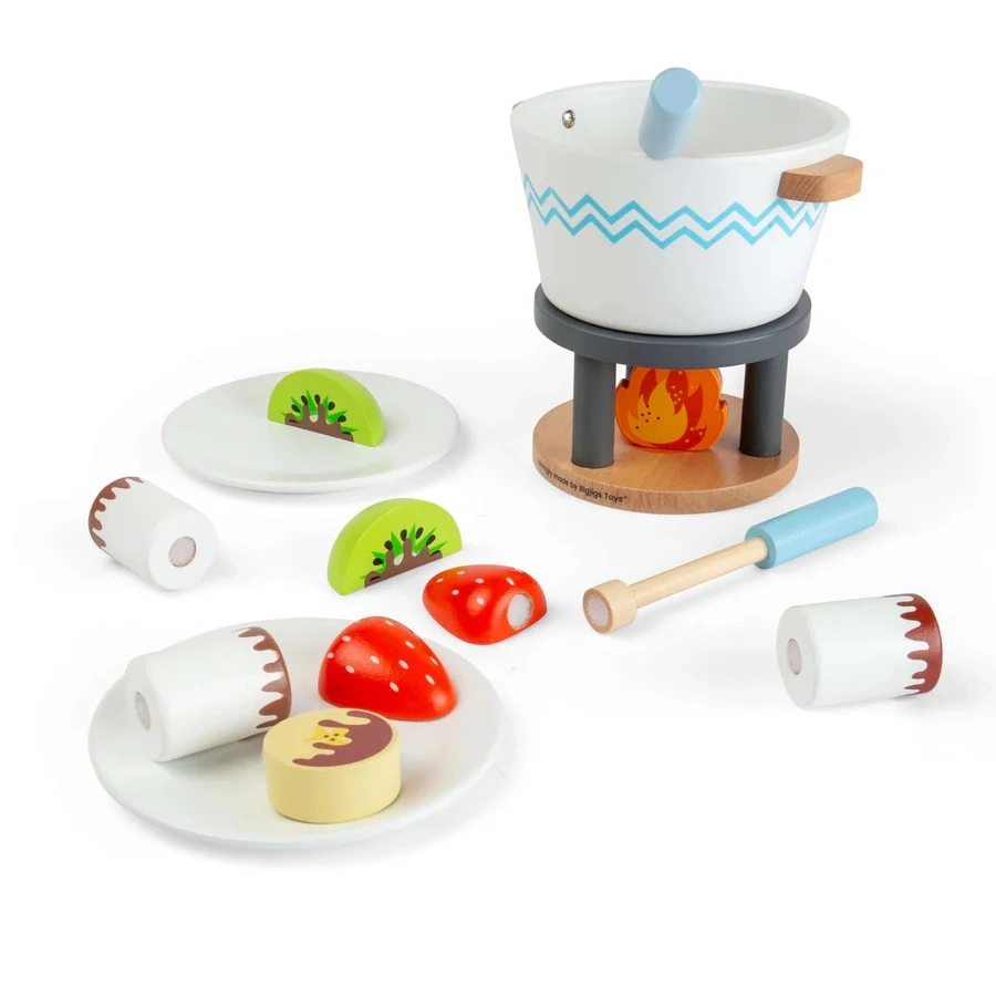 Maak van kindertijd aan tafel een zoet avontuur met de houten fondueset van Bigjigs Toys. De set biedt realistisch serveerspel, stimuleert fijne motoriek, communicatie en samen spelen met z’n tweeën. Gemaakt van FSC-gecertificeerd hout dat voldoet aan veiligheidsnormen voor zorgeloos en langdurig speelplezier.