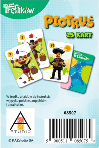 Een kleurrijke set “Piotruś”-kaarten met personages uit de populaire serie Familie Trefíks van Trefl brengt plezier voor de allerkleinsten. De duurzame kaartjes gaan talloze spelletjes mee, stimuleren reactievermogen, geheugen en concentratie en zijn ideaal om thuis, op de kleuterschool of onderweg te spelen.
